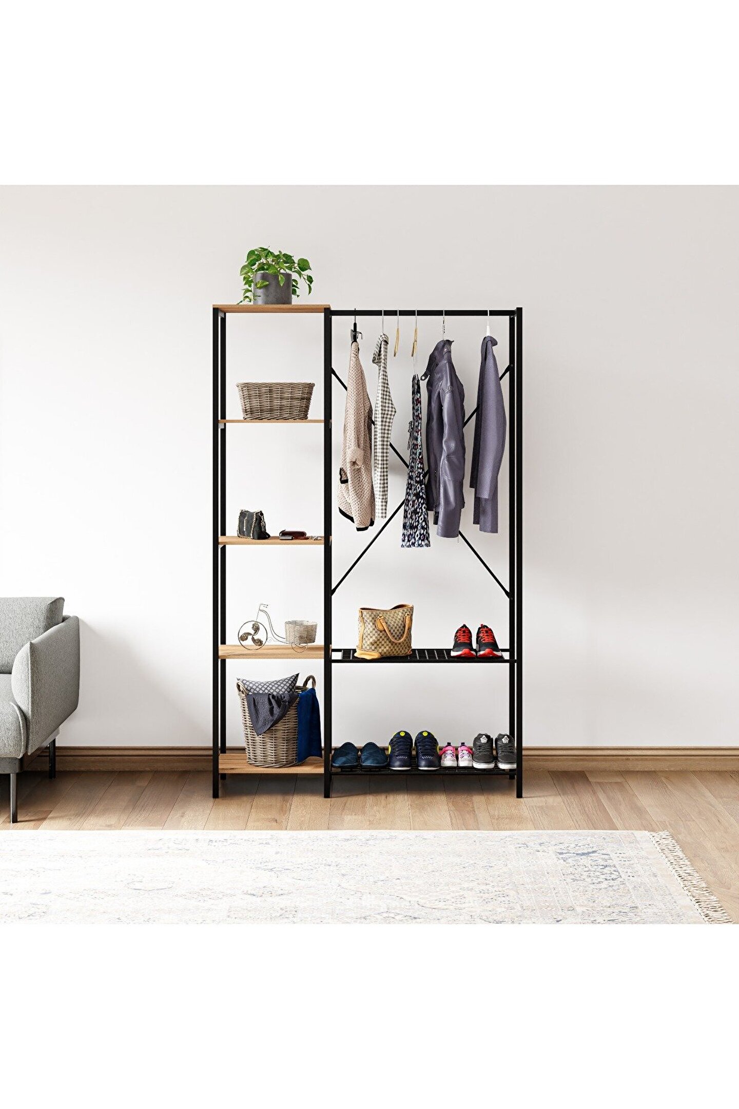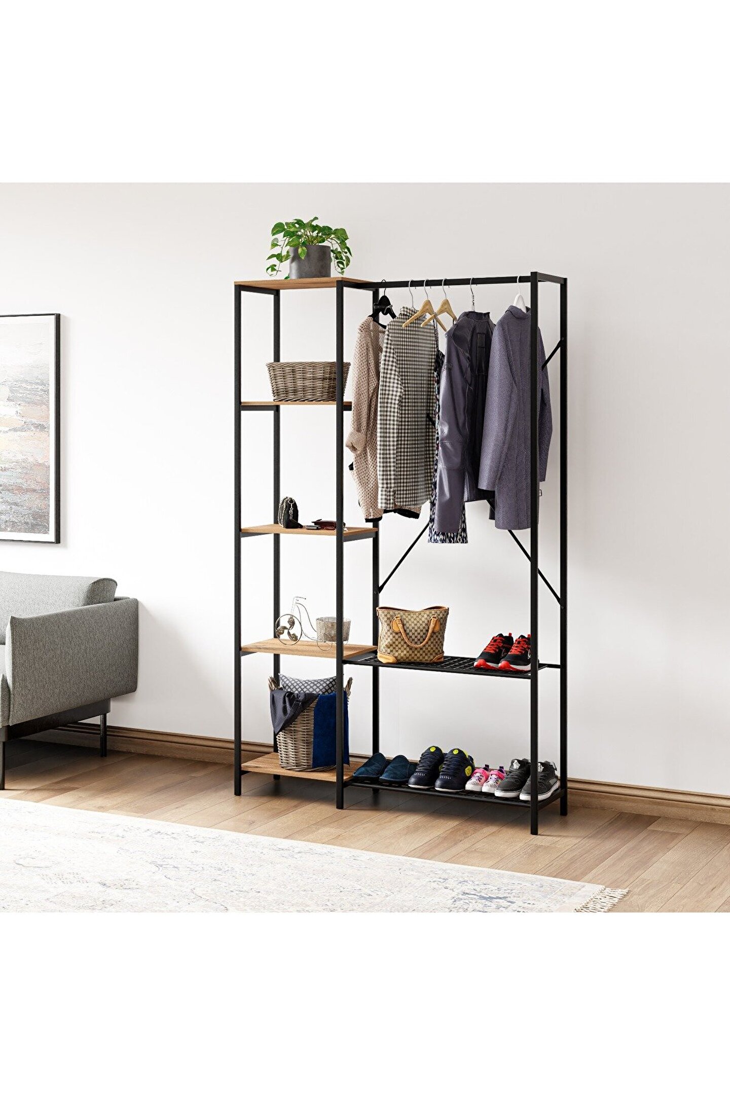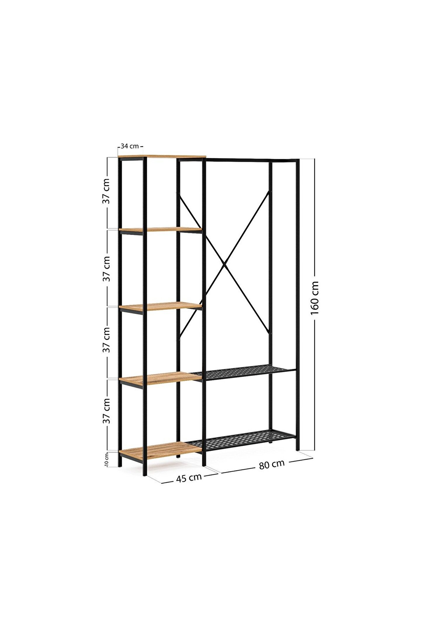 Çok Amaçlı Metal Ayaklı Raflı Dolap Ayakkabılık Portatif Portmanto Gardırop , evlerinizde şık tasarımıyla sizleri kullanışlı bir imkan sunar. ; Kaliteli ve dayanıklı yapısı ile ilgi çeken çok amaçlı dolap, iç mekanların havasını değiştirirken öte yandan da zarif ve özgün bir dekor oluşturmayı teşvik eder. ; Çok amaçlı dolap, oldukça sağlam ve rahat bir ürün olarak dikkat çeker. ; Çok Amaçlı Metal Ayaklı Raflı Dolap Ayakkabılık Portatif Portmanto Gardırop Özellikleri Nelerdir? Çok Amaçlı Metal Ayaklı Raflı Dolap Ayakkabılık Portatif Portmanto Gardırop pek çok özelliği ile dikkat çeker. ; Ürünün ön plana çıkan nitelikleri hakkında şunları söylemek mümkün olur: Yükseklik : 160 cm Genişlik : 125 cm Derinlik : 34 cm Raf genişliği : 45x34 cm Raf Aralığı : 37 cm Raf Malzemesi Mdf dir . ; Oldukça kaliteli ve sağlamdır. ; Ürün, kurulumu kolaylaştırıcı montaj parçaları ile birlikte gönderilmektedir.;
