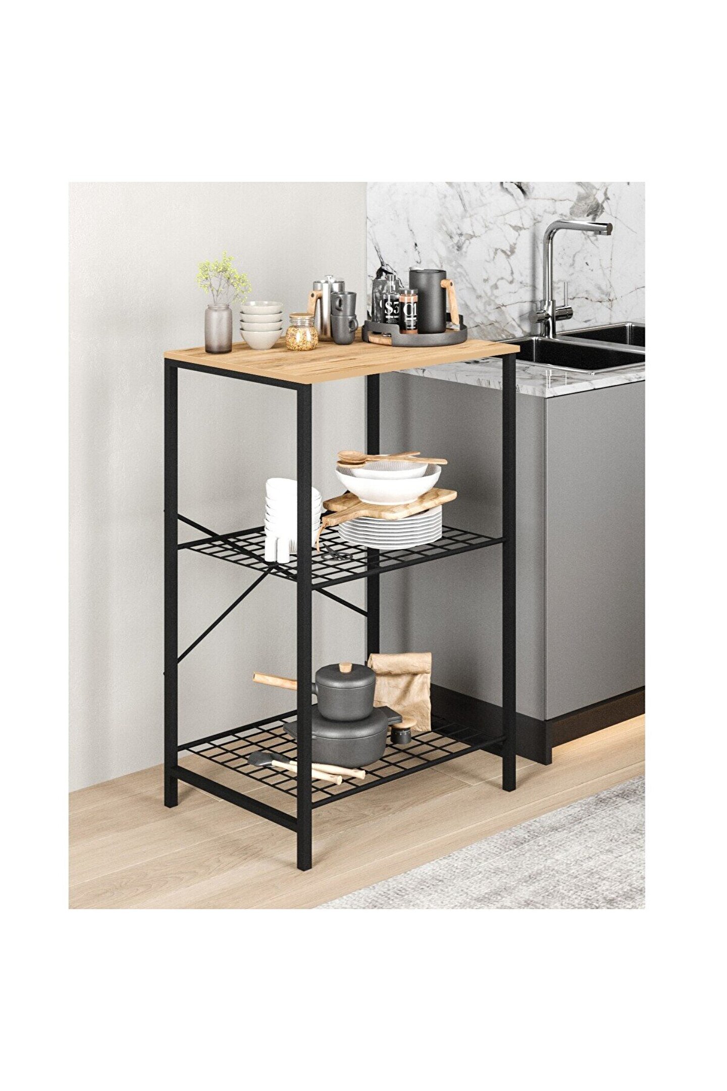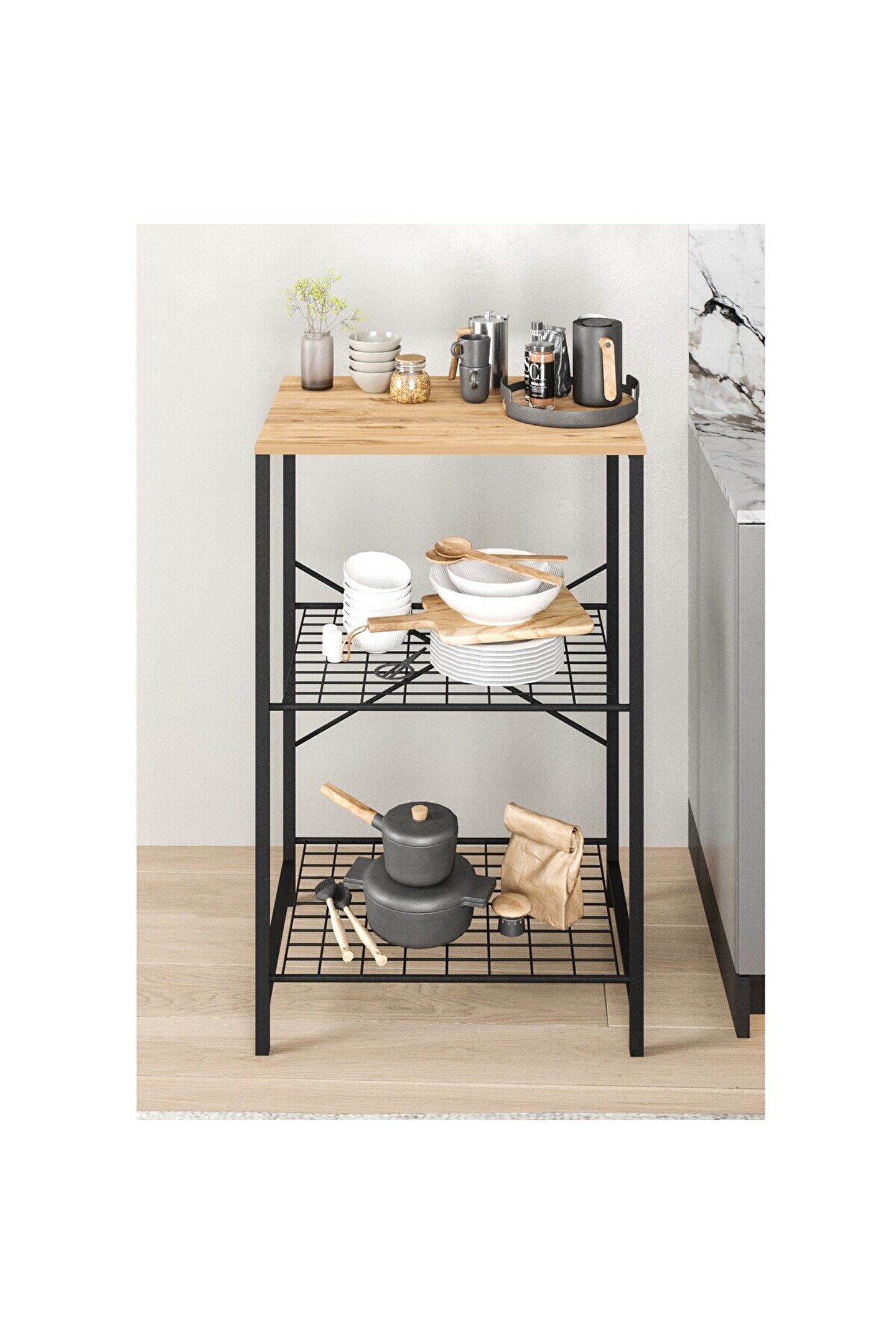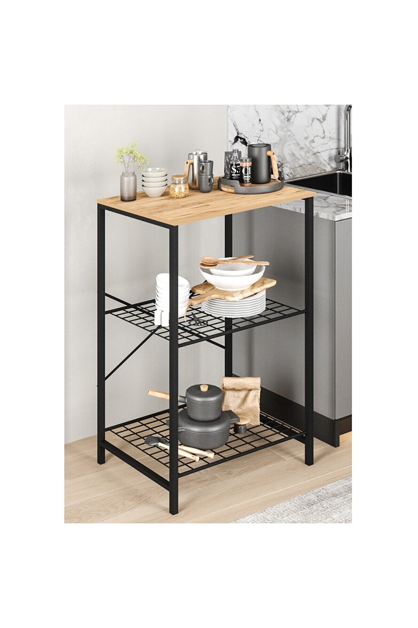 eportatif Çok Amaçlı Mutfak Rafı Bangosu Masa Dar Çam 1442