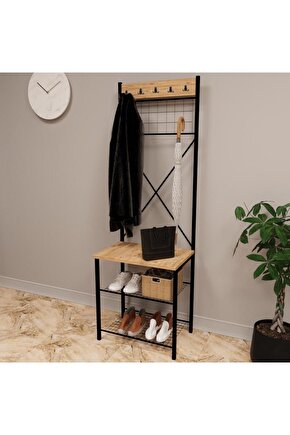 Ürün Ölçüleri: Ürün Genişliği: 60 Cm Ürün Derinliği: 30 Cm Ürün Ayakkabılık Kısım Yüksekliği: 60 Cm Ürün Raf Araları Yüksekliği: 25 Cm Ürün Sırt Yüksekliği: 170 Cm Ürün Özellikleri: Ürün ahşap kısımları 1,8mm kalınlığında suntalamden üretilmiştir . ; Metal kısımları elektrostatik boyalıdır demir malzemeden üretilmiştir, demonte olarak gönderim yapılacaktır. ; Görseldeki diğer ürünler aksesuar amaçlı kullanılmıştır ürün içinde gönderilmeyecektir. ; Giriş alanınızı düzenlemenin ve daha fazla depolama alanı yaratmanın en ideal yolu olan dar portmantoyu hemen satın alın! Daha düzenli ve düzenlemiş bir yaşam için şimdi harekete geçin!;