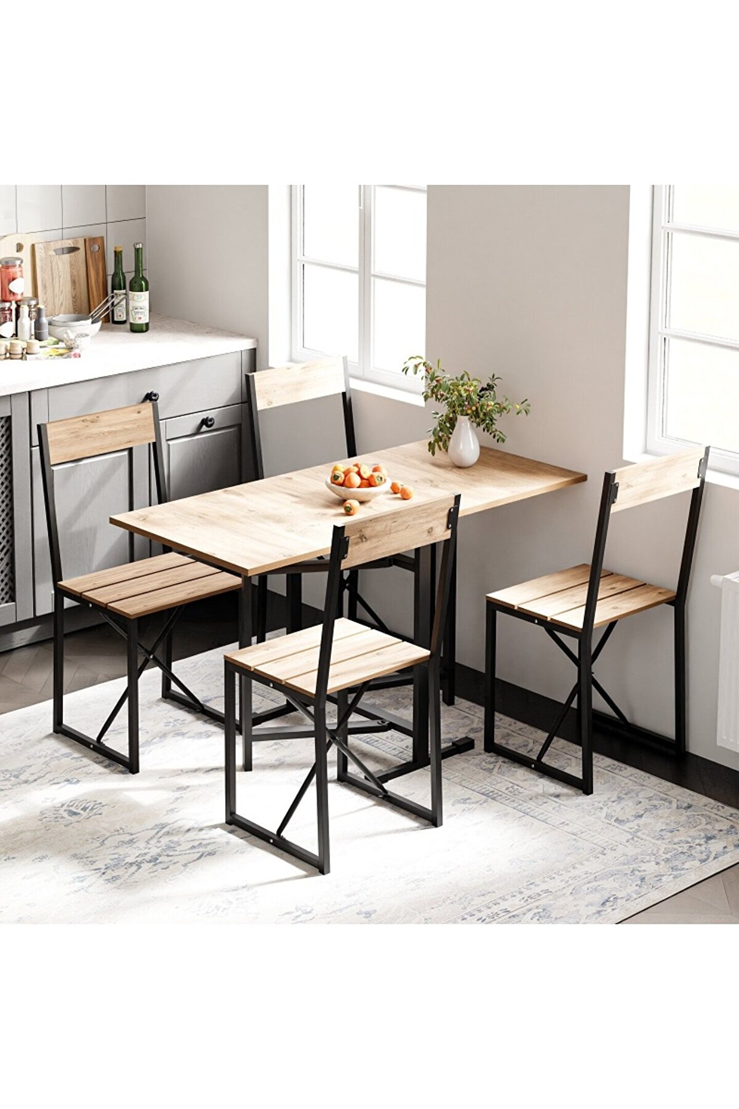 Katlanabilir tasarımı sayesinde, kullanılmadığı zamanlarda yer kaplamayan ve kolayca saklanabilen 4 kişilik mutfak masası takımı; Sandalyelerde kumaş kullanılmamış olup, dayanıklı ve uzun ömürlü bir kullanım sunar; 2 yıl garanti süresi ile satın alma sonrası güven sağlar ve müşteri memnuniyetini ön planda tutar; Kahverengi renk seçeneğiyle mutfak dekorasyonunuza sıcak ve şık bir dokunuş ekler; Katlanabilir masa fonksiyonu sayesinde, ihtiyaç duyulduğunda pratik bir şekilde genişleyebilir ve misafirlerinizi rahatça ağırlamanızı sağlar;