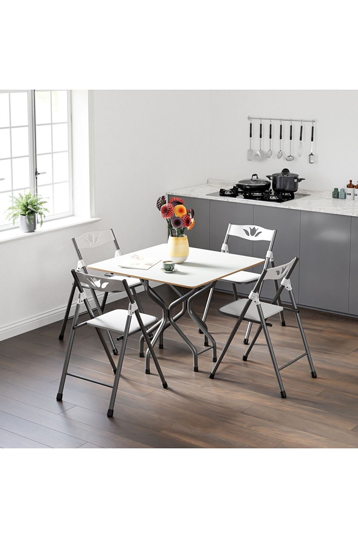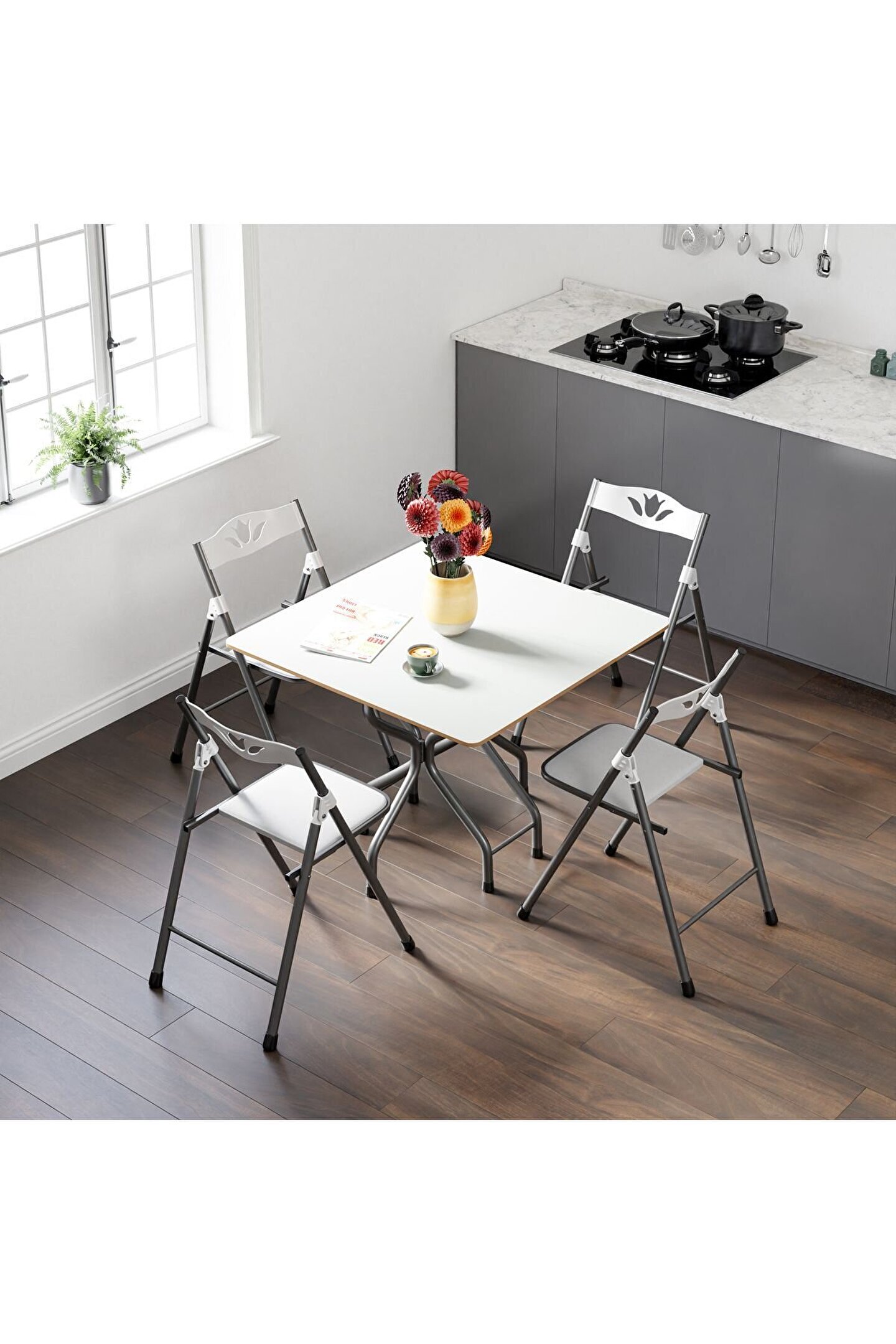 Katlanır Kırma Beyaz Kare Masa Sandalye Takımı Seti, en popüler mobilya unsurlarından biridir. Çok yönlü ve kaliteli yapısı ile dikkat çeken masa sandalye takımı, her türlü alanda konumlandırılabilir. Birçok dekorasyon stili ile uyumlu olan set, iç mekanların havasını değiştirir. Katlanır Kırma Beyaz Kare Masa Sandalye Takımı Seti Nedir? Katlanır Kırma Beyaz Kare Masa Sandalye Takımı Seti, kırma masa sandalye seti olarak da bilinir. Dört adet sandalyeden ve bir adet masadan oluşur. Beyaz mermer desenli masası ve katlanır sandalyeleri ile öne çıkan ürün, beklentileri maksimum oranda karşılar. Mutfak masa sandalye takımı arayanlar için eşsiz bir seçim olan set, mutfakların şık ve modern görünmesine yardımcı olur. Trend tasarımı ve sağlamlığı ile bilinen bu masa sandalye seti, mutfaklar için en doğru seçimlerden biri olarak kabul edilir. Beyaz renkte olduğu için tüm mutfaklarla uyum gösterir. Özellikle de dört kişilik aileler için çok uyun olan masa ve sandalye, yemek saatlerinin konforlu bir şekilde geçmesine izin verir. Balkon masa sandalye takımı olarak da değerlendirilen set, tüm balkonlar için uygundur. Balkonların işlevsellik kazanmasına yardımcı olur. Balkon keyfi yapmak, açık havada zaman geçirmek isteyenler için doğru bir tercih olacaktır. Ürün bahçe masa sandalye takımı arayanların ihtiyaçlarını da karşılar. Bahçelerin dekorasyonunu optimal manada tamamlayan ürün, konforlu bir bahçe deneyimini teşvik eder. Kaliteli ve sağlam yapısı nedeniyle bahçelerde de rahatlıkla kullanılabilen set, beklentileri ve ihtiyaçları hemen karşılar. Ofis masa sandalye takımı, ofis ortamlarına da uygun bir seçim olarak lanse edilir. Özellikle de ofislerin mutfak, banyo, teras ve bahçe alanlarında konumlandırılabilir. Katlanır Kırma Beyaz Kare Masa Sandalye Takımı Seti Özellikleri Nelerdir? Katlanır Kırma Beyaz Kare Masa Sandalye Takımı Seti, kendine has nitelikleri ile farkını ortaya koyar. Ürünün öne çıkan özellikleri şunları içerir: Kırma masa sandalye setidir.; Masanın ölçüsü 90 x 90 cm şeklindedir.; Masanın yerden yüksekliği 72 cm kadardır.; Masa elektrostatik boyalı metal ayaklar barındırır.; Masa ahşap beyaz mermer desenli sunta lam içerir.; Masa katlanabilir iki ayrı kanada sahiptir.; Sandalye, balkon, mutfak, teras, bahçe ve ofis gibi alanlarda kullanılmak üzere üretilmiş olup son derece şık bir görüntü sunar.; Sandalyenin mafsalları ve sırt alanı plastik malzeme içerir.; Sandalyenin oturum alanları süet kumaştan yapılmıştır.; Sandalyenin kapalı ölçüleri 90 x 45 x 5 cm şeklindedir.; Sandalyenin oturma yüksekliği 45 cm şeklindedir.; Katlanır Kırma Beyaz Kare Masa Sandalye Takımı Seti Hangi Avantajları Sunar? Katlanır Kırma Beyaz Kare Masa Sandalye Takımı Seti, pek çok avantajı beraberinde getirir. En önemlisi de ürün, son derece kaliteli ve güçlü yapısı ile uzun seneler boyunca kullanım olanağı vadede. Uzun ömürlü olmasından ötürü sizi ekstra masraflardan kurtarır. Katlanır Kırma Beyaz Kare Masa Sandalye Takımı Seti, her türlü alanda konumlandırılabilen, şık, modern ve trend bir üründür. Dört sandalye ve bir masa içeren ürün, aileler için harika bir seçenektir. Katlanır masa sandalye seti, evlerin mutfak, balkon, bahçe ve teras gibi alanlarında rahatlık kullanılabilir. Bunun haricinde Katlanır Kırma Beyaz Kare Masa Sandalye Takımı Seti, ofislerde de tercih edilebilir. Ofislerin balkon, teras ve mutfak gibi yerlerinde kullanılabilen ürün, hoş tasarımı ve modern görüntüsü ile bulunduğu alanın çok daha şık ve benzersiz görünmesine izin verir. Çok yönlü, katlanır ve kullanışlı olan Katlanır Kırma Beyaz Kare Masa Sandalye Takımı Seti’ni siz de hemen edinmek için sepetinize ekleyebilirsiniz.
