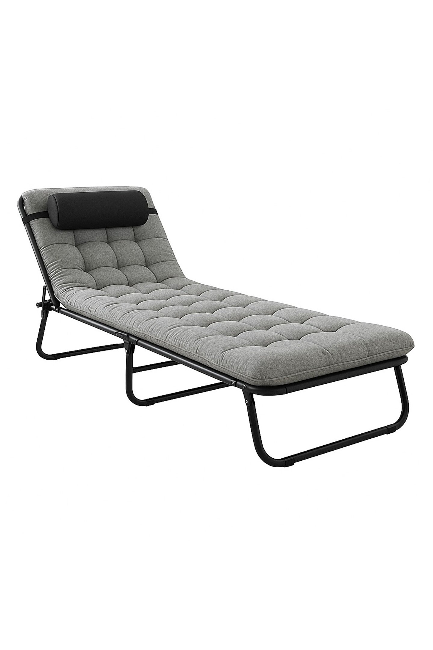 eportatif Minderli Yastıklı Kamp Yatağı Katlanır Şezlong Kampet Siyah 1630