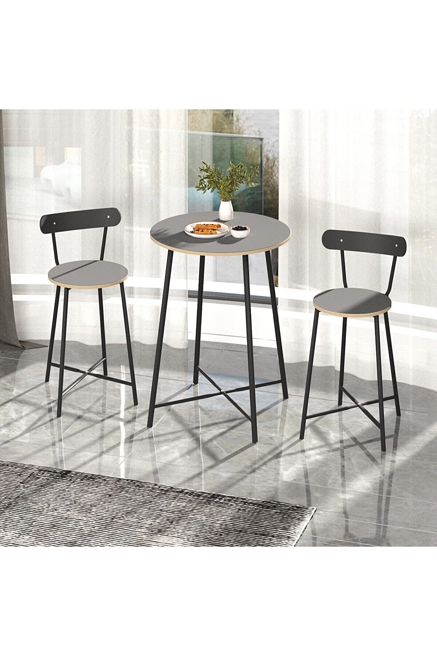 Mutfak Oval 2 Kişilik Bar Yemek Masası Füme, isminden de anlaşılacağı gibi iki kişilik olarak tasarlanan, şık ve kaliteli bir masa sandalye modelidir. Kaliteli yapısı ve sağlam duruşu ile beklentileri karşılayan masa, hem evlerde hem de işletmelerde kullanılabilir.
