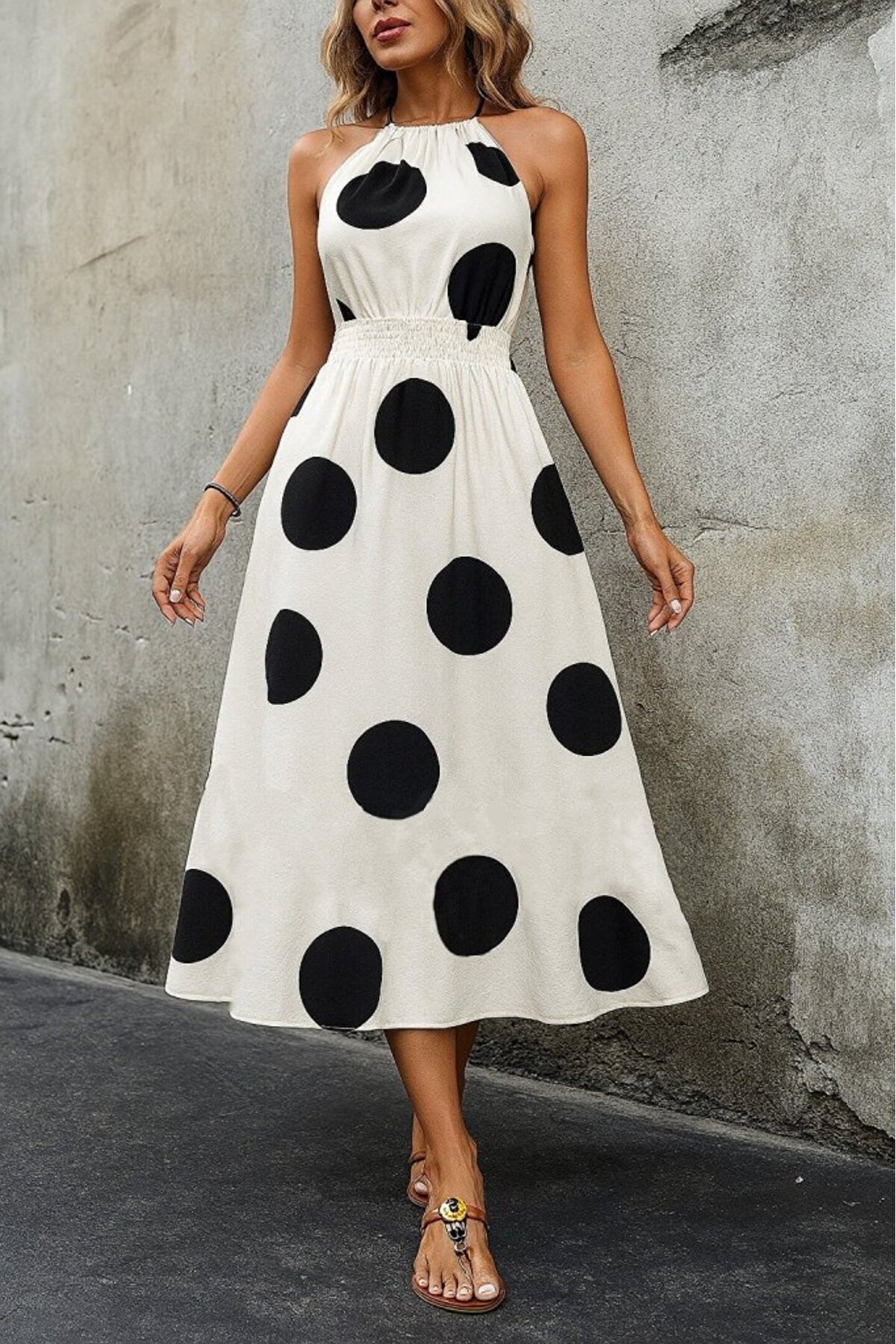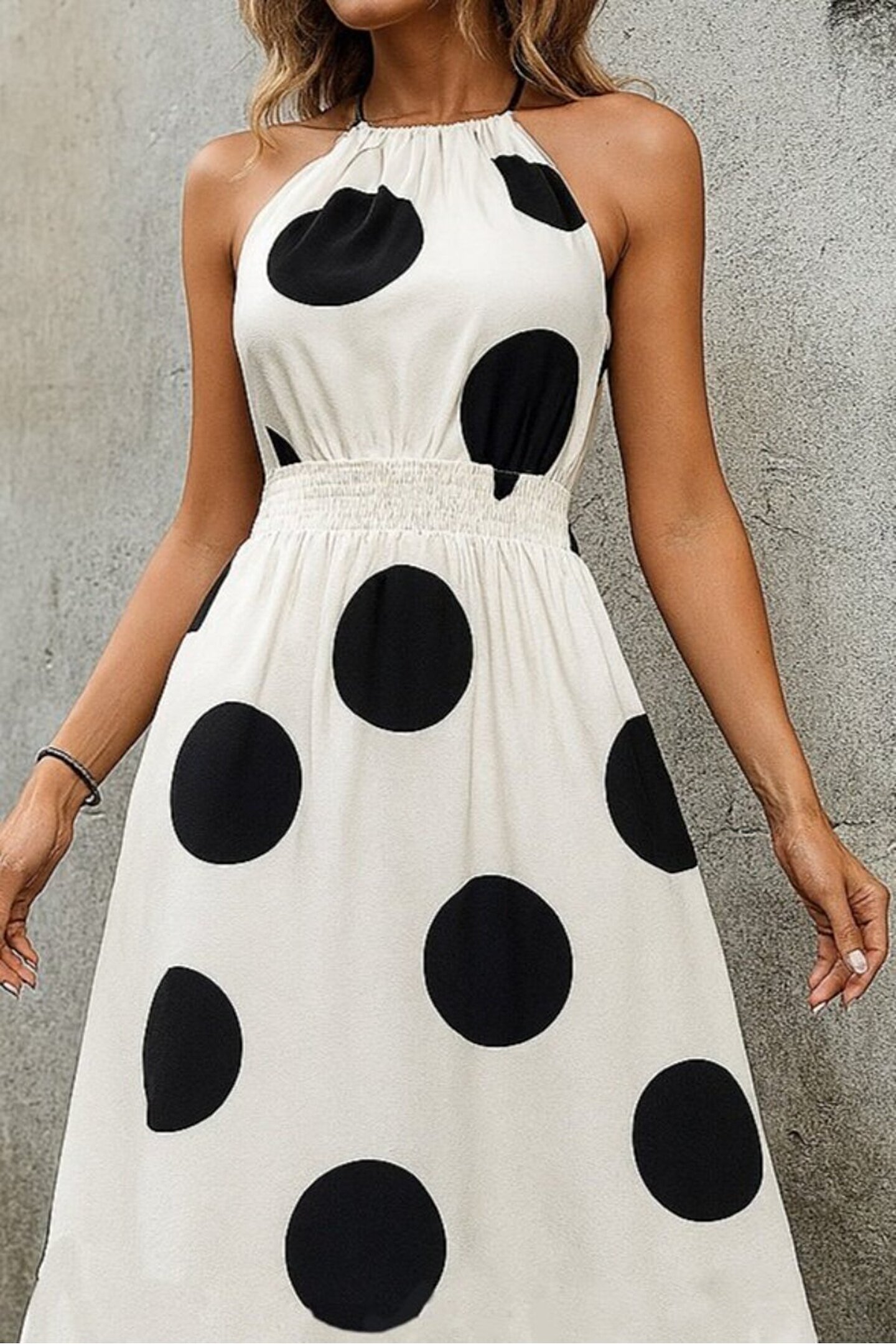 ermege Kadın Kolsuz Boyundan Bağlamalı Beli Lastikli Dijital Baskı Süprem Uzun Elbise