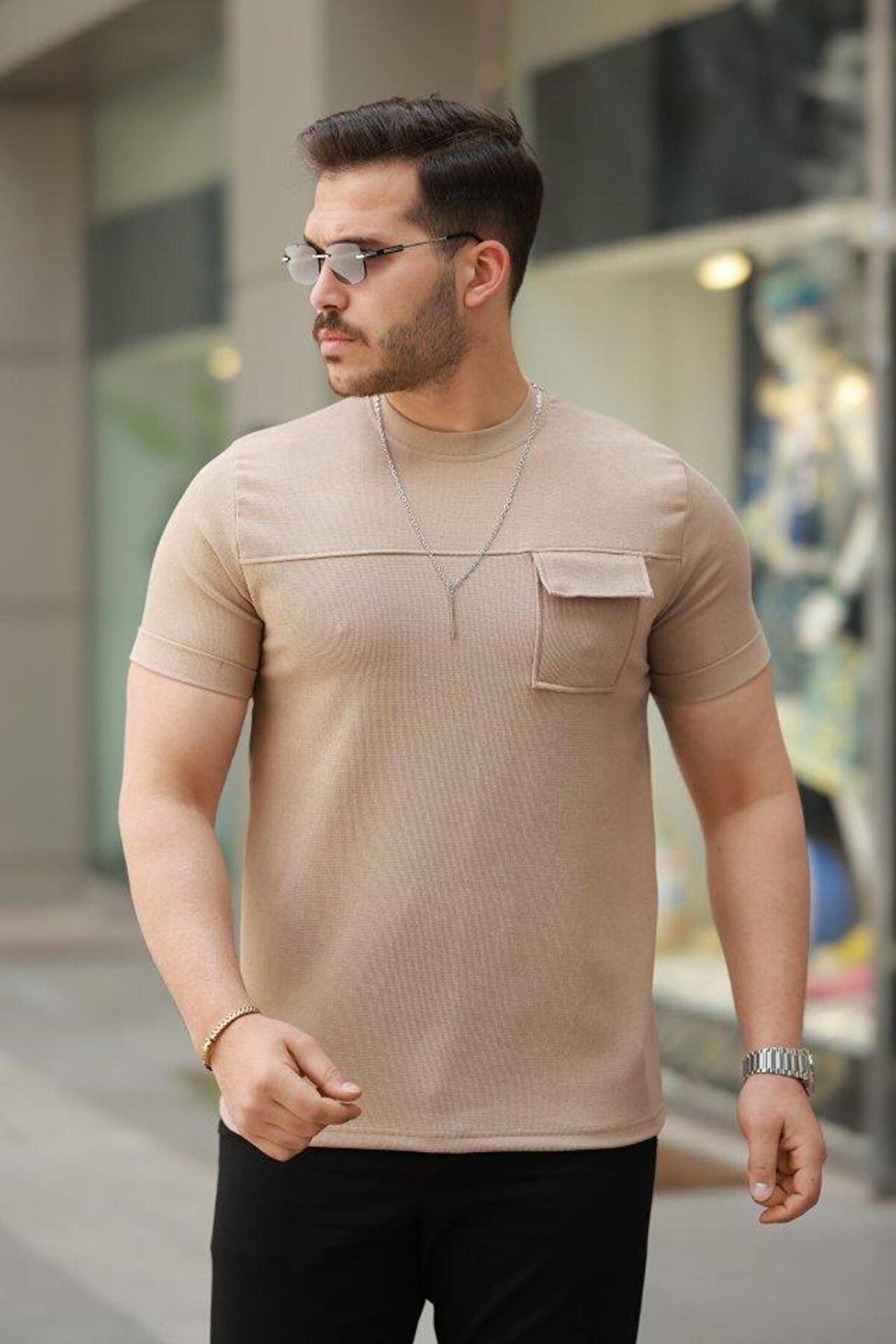 ESSE BUTİK Erkek Cepli Kolyeli Kısa Kollu örme Kumaş Tişört
