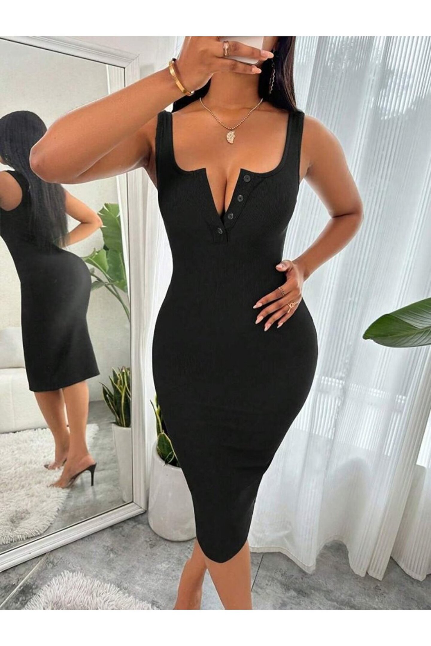 Kadın Askılı önü Düğmeli Midi Kaşkorse Elbise