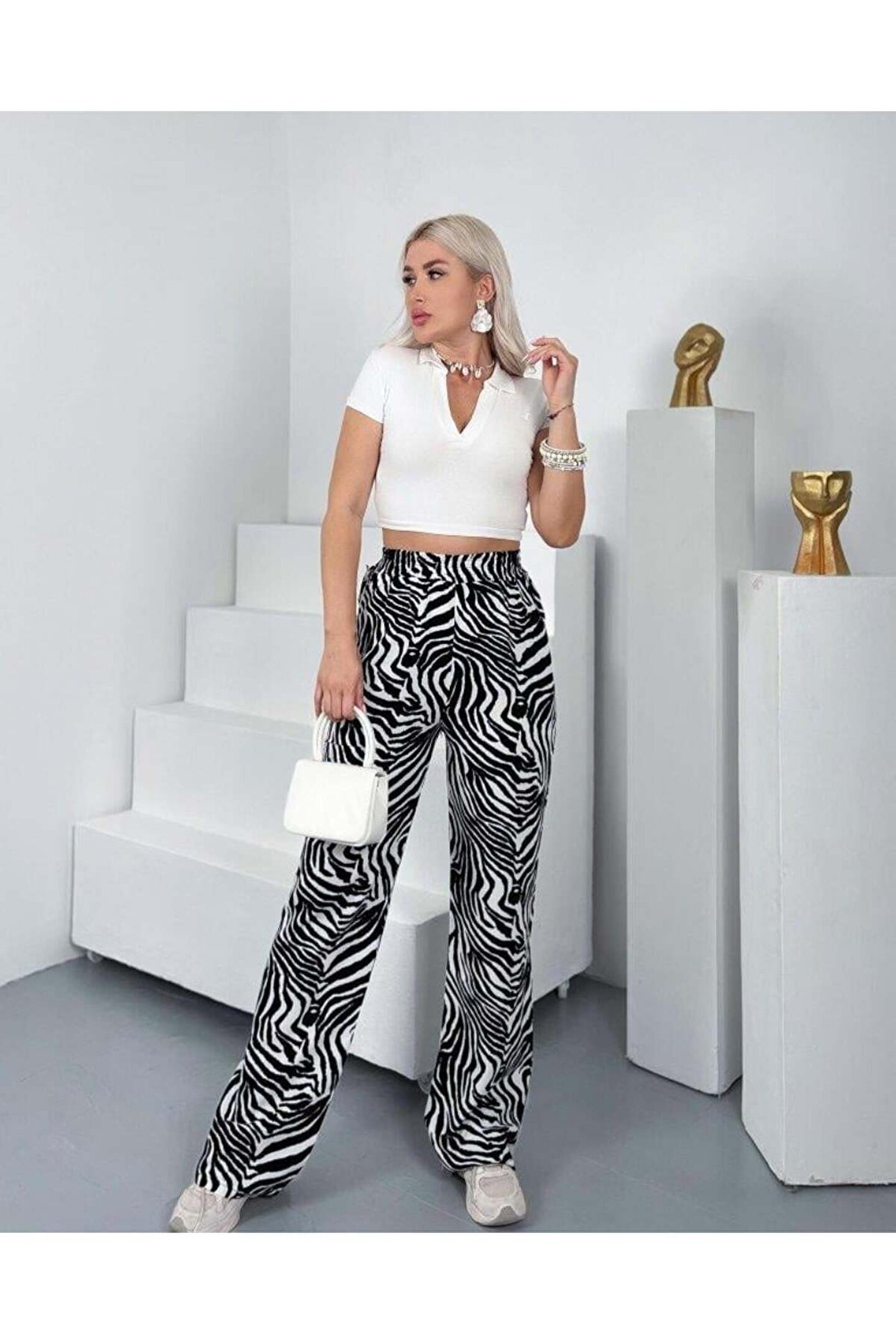 ETİLER COLLECTION Kadın Desenli Dokuma Viskon Kumaş Cepli Bol Paça Pantolon