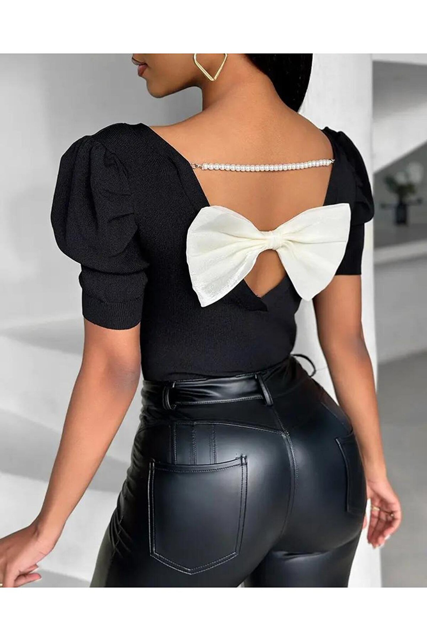 Kadın Kısa Kollu Sırt Inci Ve Kurdela Detay Karpuz Kol Yerli Krep Bluz.; 109 Adet Standart Beden Gerisi 3 Beden