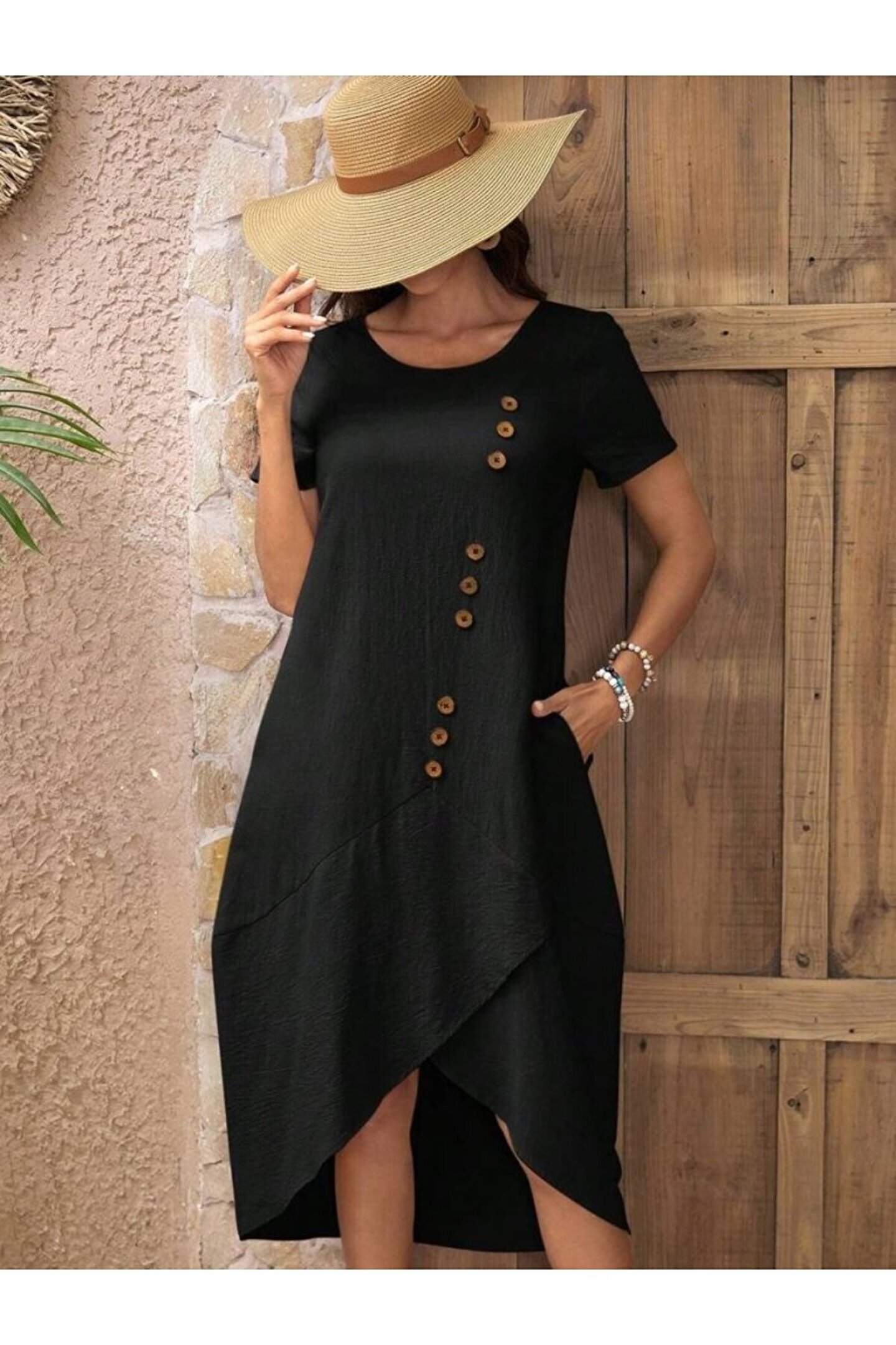 Kadın Kısa Kollu Bisiklet Yaka Düğme Detay Müslim Elbise