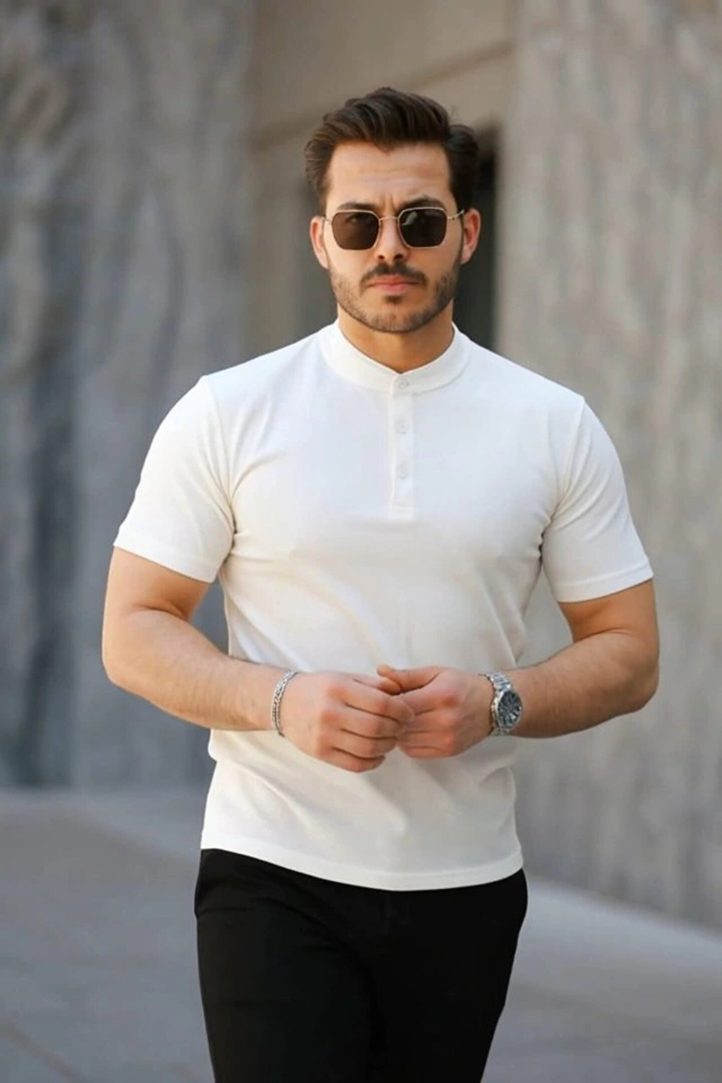 Erkek Kısa Kollu Hakim Yaka önü Düğmeli Viskon Tişört