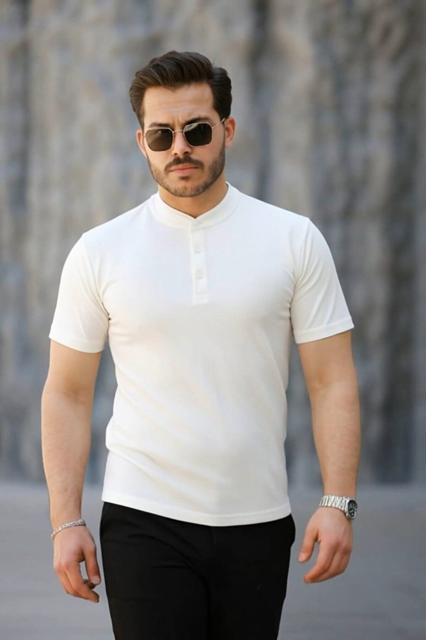 Erkek Kısa Kollu Hakim Yaka önü Düğmeli Viskon Tişört