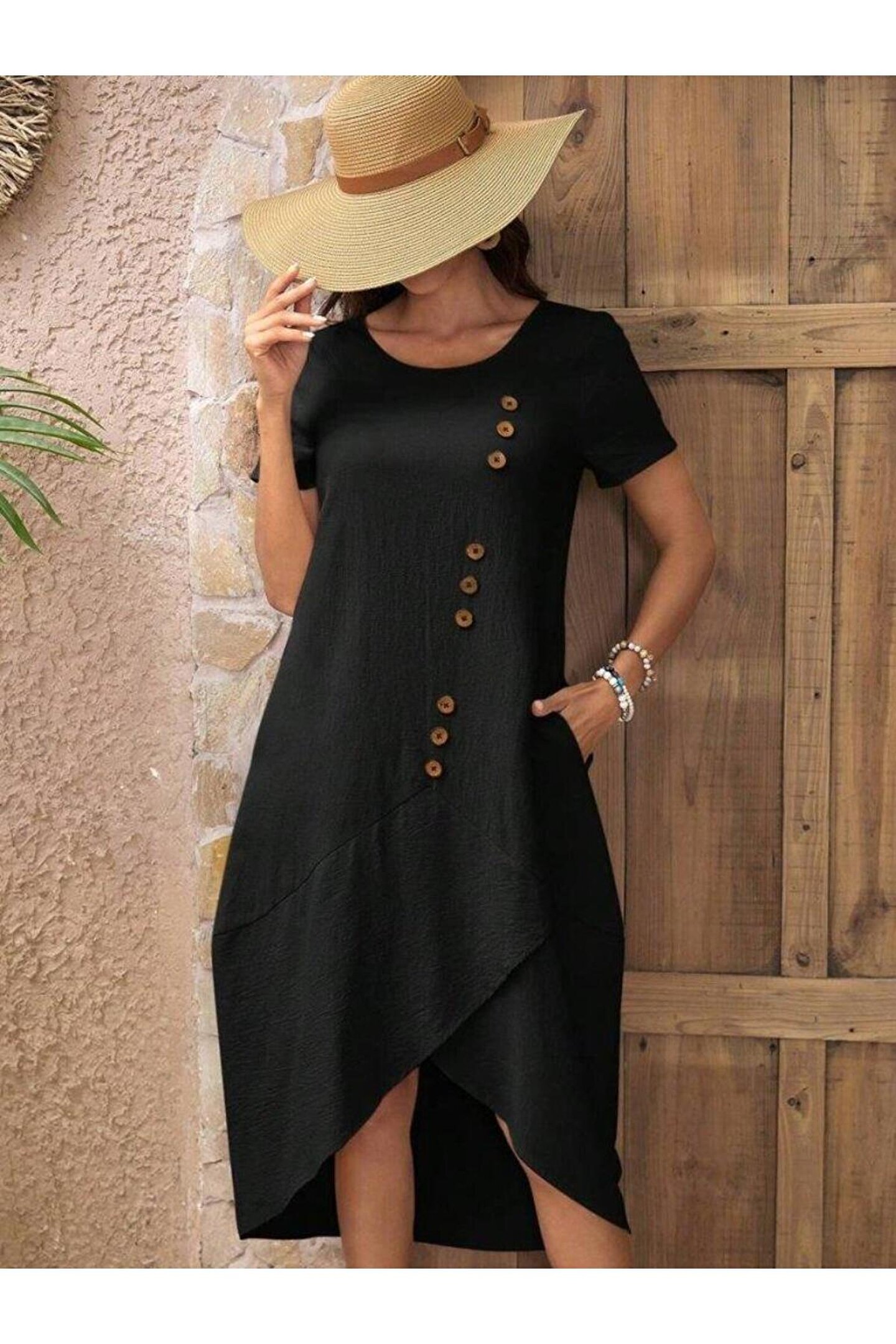 Kadın Kısa Kollu Bisiklet Yaka Düğme Detay Müslim Elbise