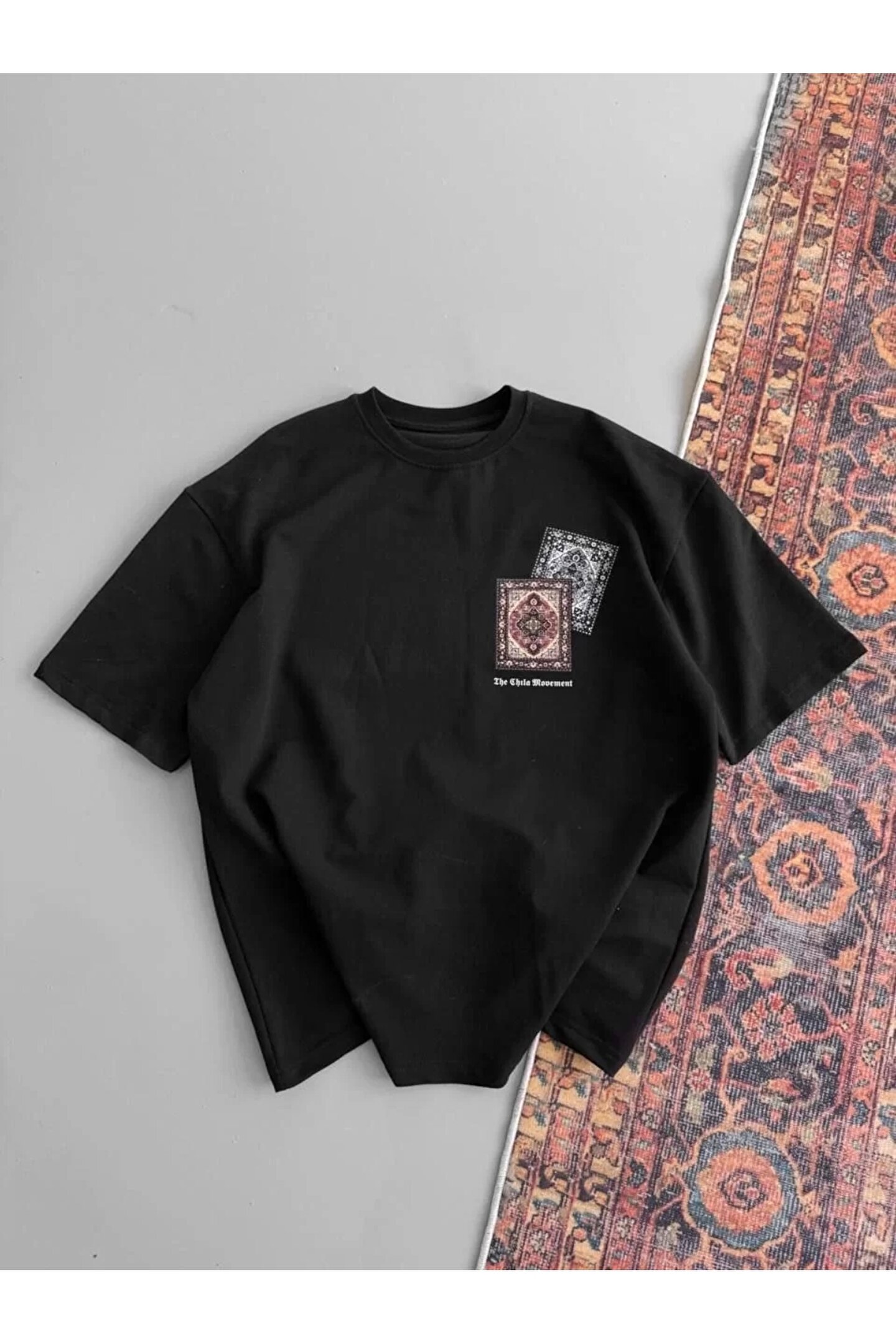 Euro Class Erkek Baskılı Oversize T-shirt - Siyah