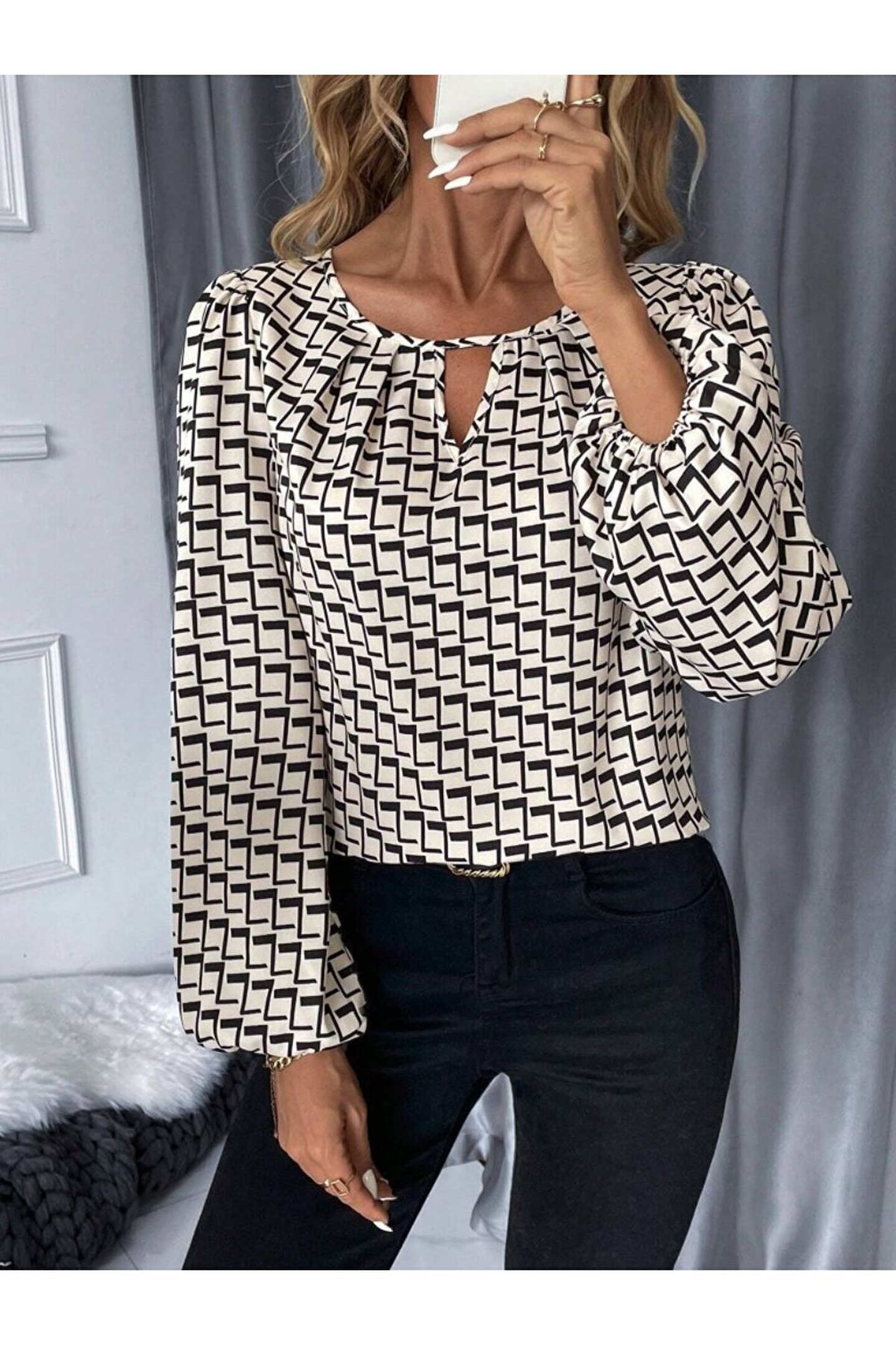 Evyora EQURİ Kadın Uzun Kollu Damla Detaylı Yaka Desenli Süprem Bluz