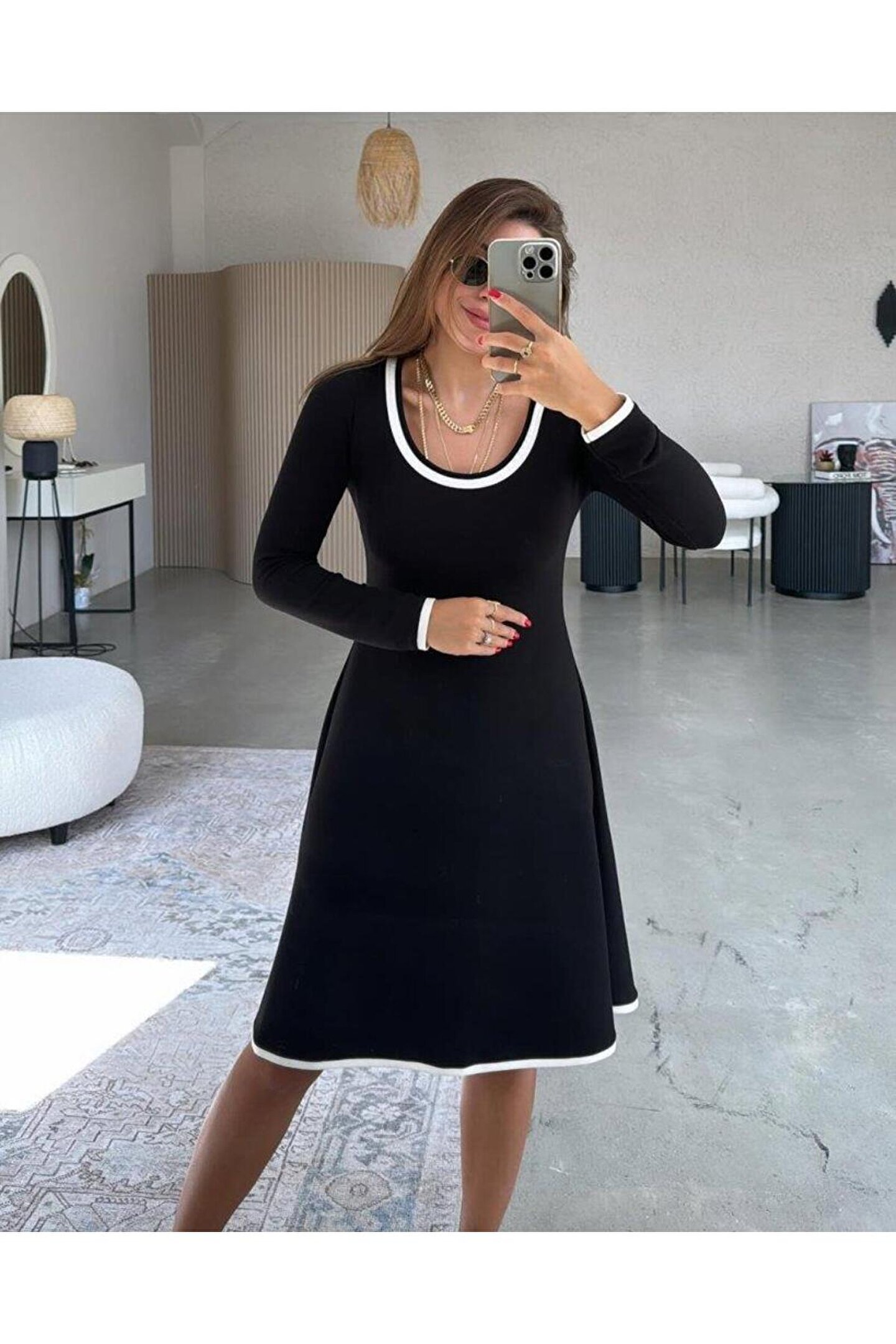 EyesOf Kadın Uzun Kollu Yuvarlak Yaka Midi Viskon Iki Iplik Elbise
