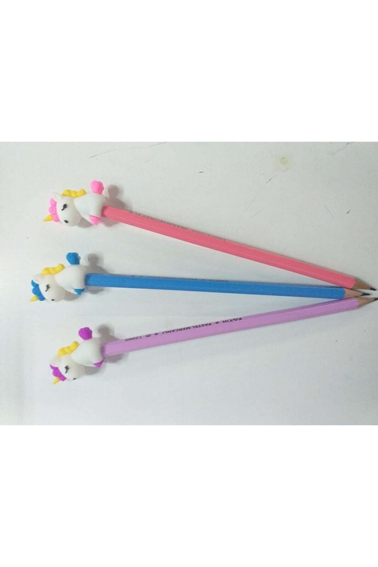 3 adet unicorn kalem başlığı ve 3 adet kurşun kalem seti