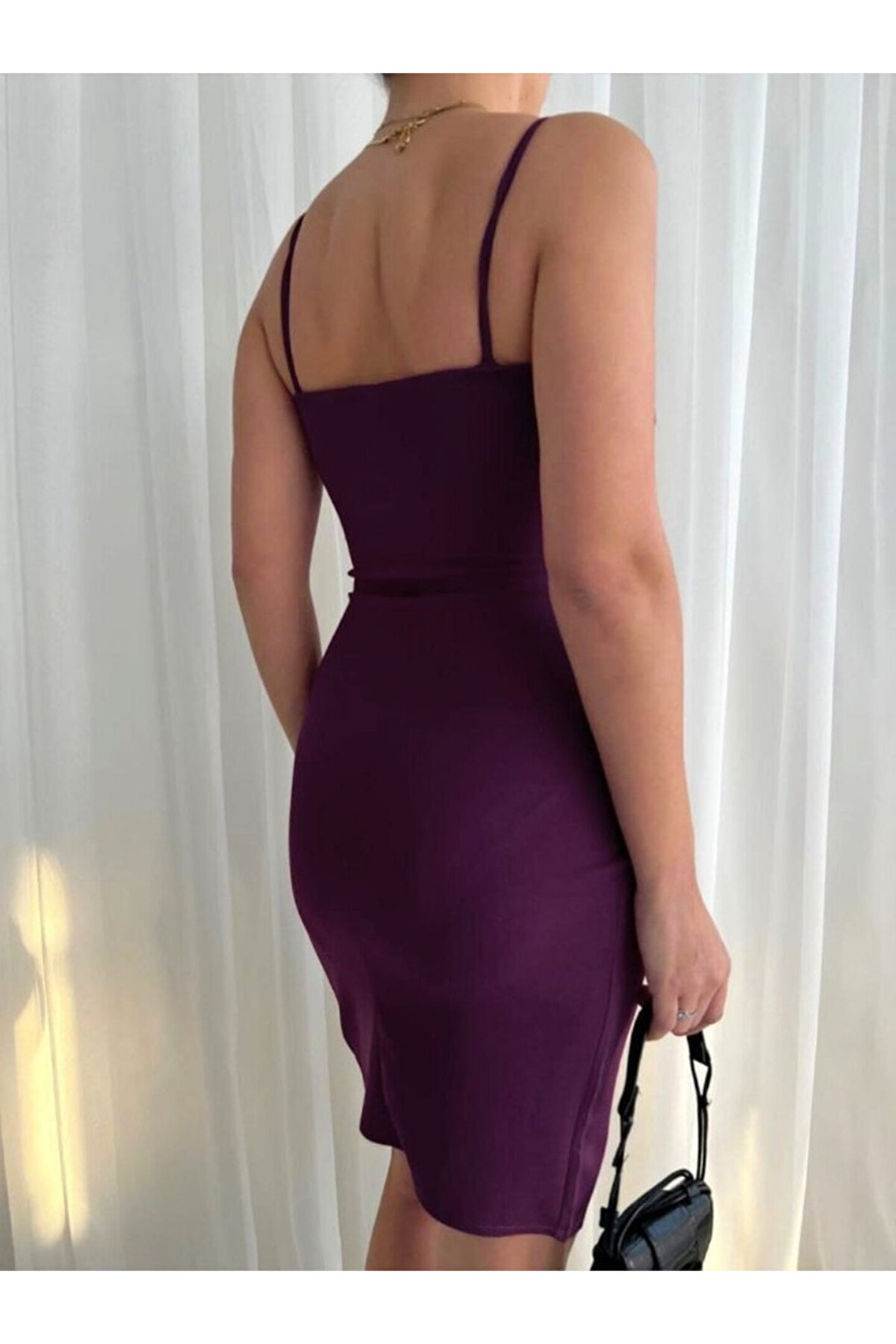 Kadın İp Askılı Yırtmaçlı Büzgülü Elbise
