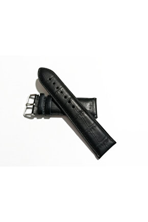 FADO Kordon Seiko& Hertürlü Saat Uyumlu Croco Baskılı Siyah Renk Deri 24 mm (154)