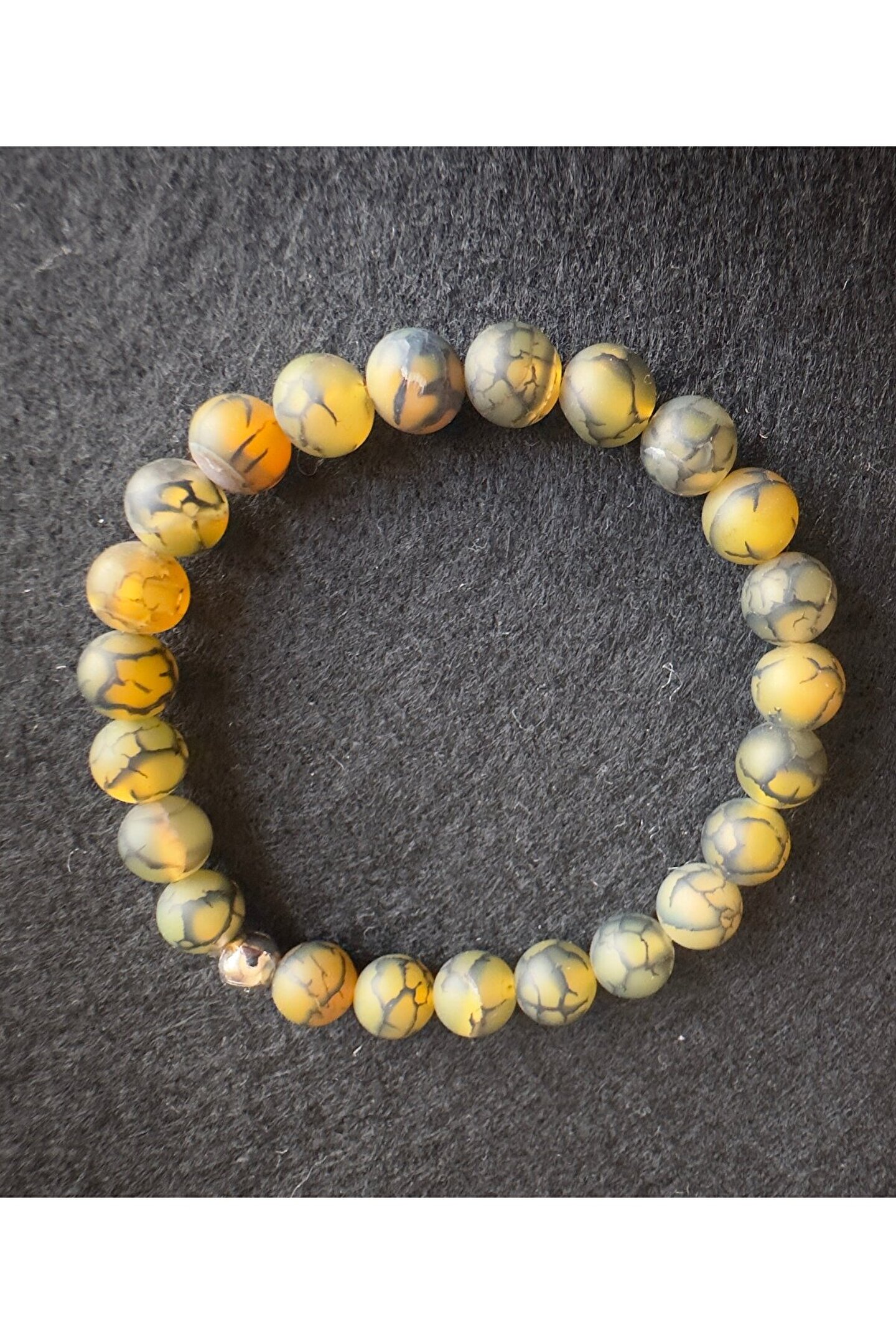 8 mm yengeç akik Doğaltaş bileklik modelidir.; esnek ipi sayesinde her bileğe uygundur.