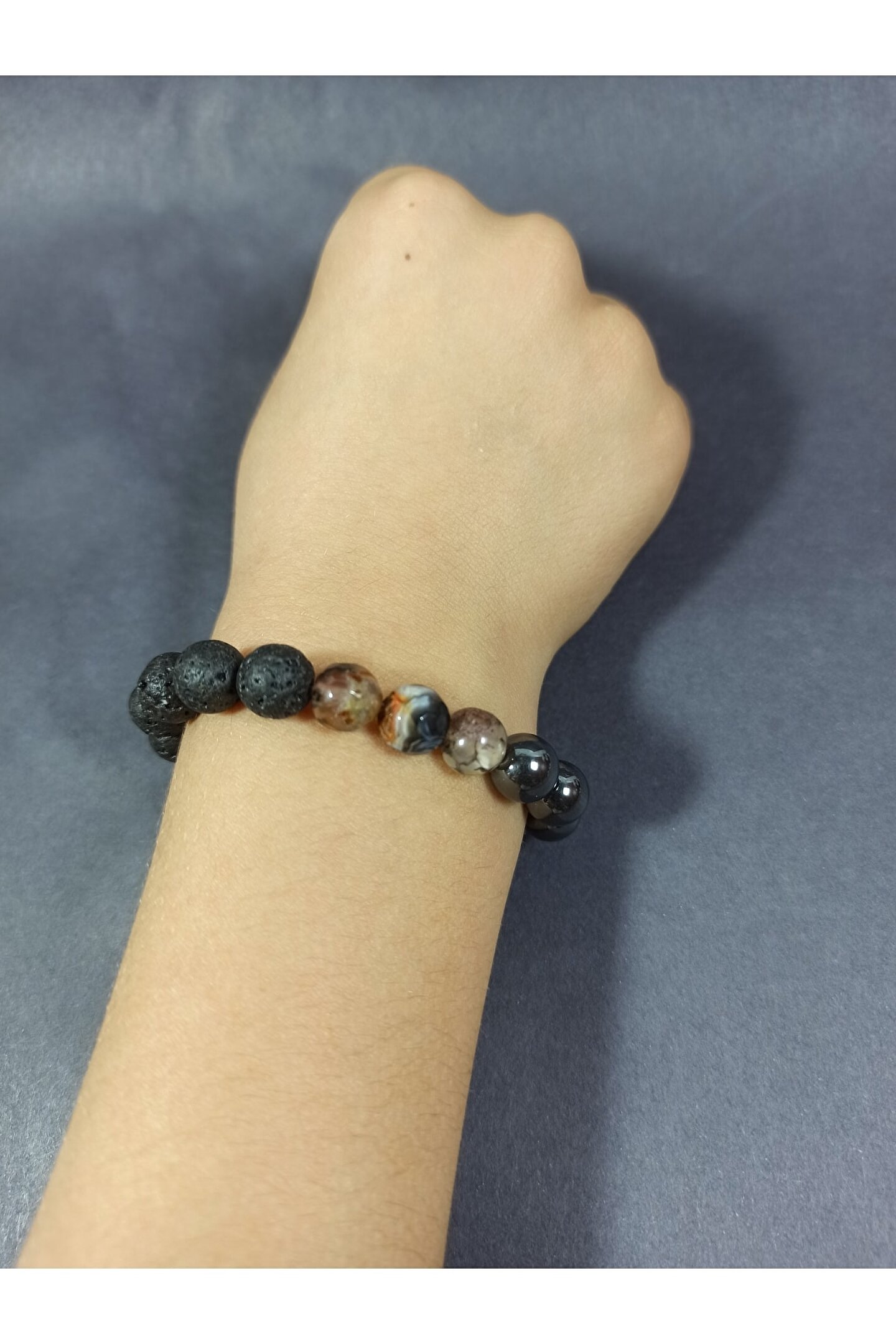 Doğal taş bileklik, her bir bileklikte bulunan benzersiz desen ve renklerle doğanın zarafetini yansıtır; Doğal taş kullanımı sayesinde, her bileklik eşsiz bir dokunuşla öne çıkar ve kişisel tarzınıza doğal bir hava katar; Doğal taş bileklik, hem günlük kullanım hem de özel günler için ideal bir aksesuar seçeneği sunar;
