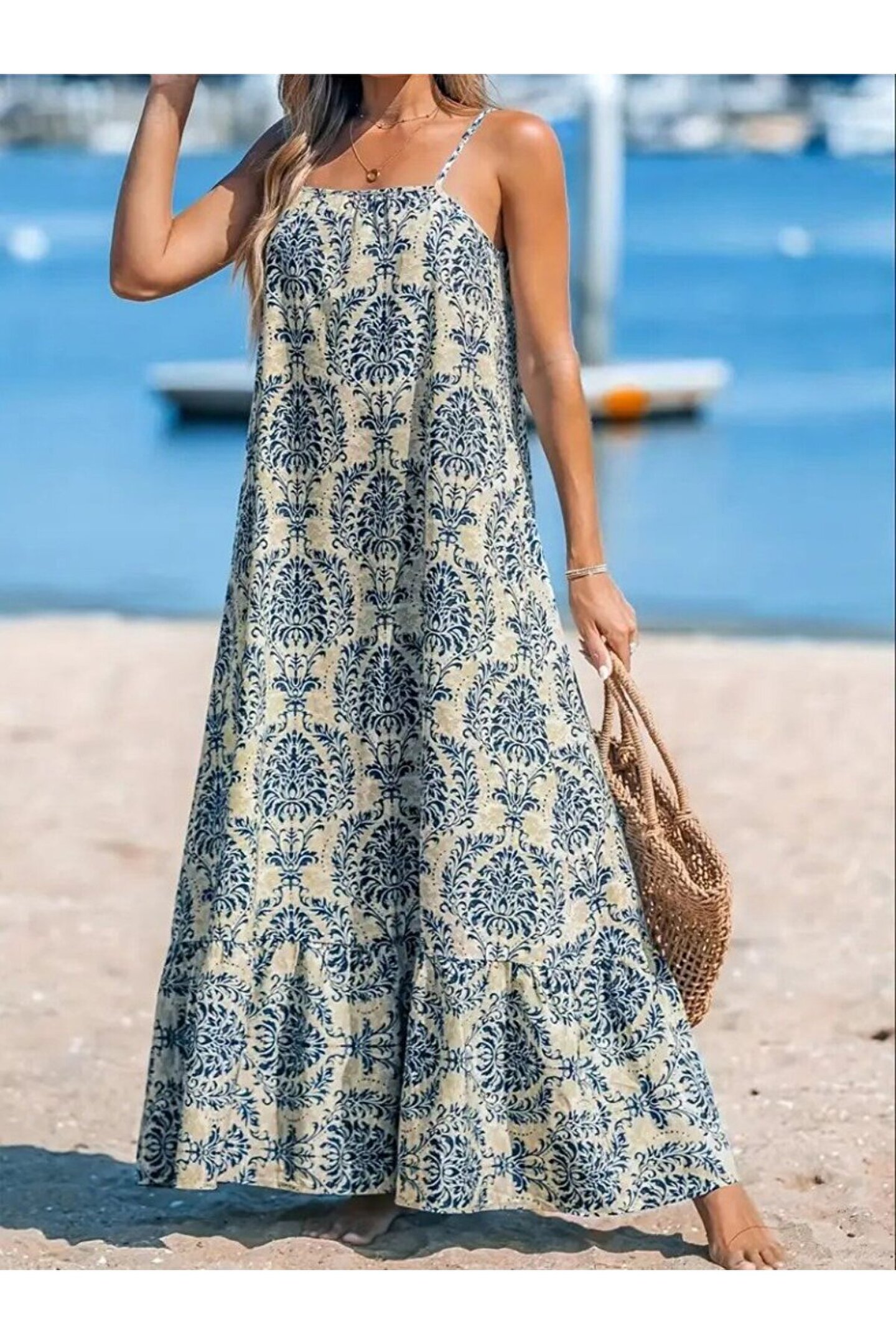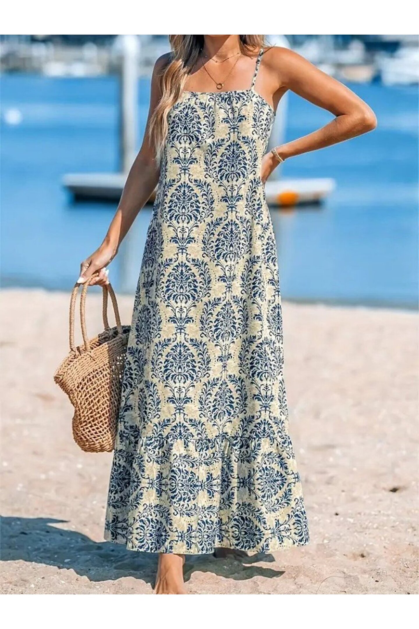 Faylora EQURİ Kadın Ip Askılı Desenli Fırfırlı Süprem Elbise