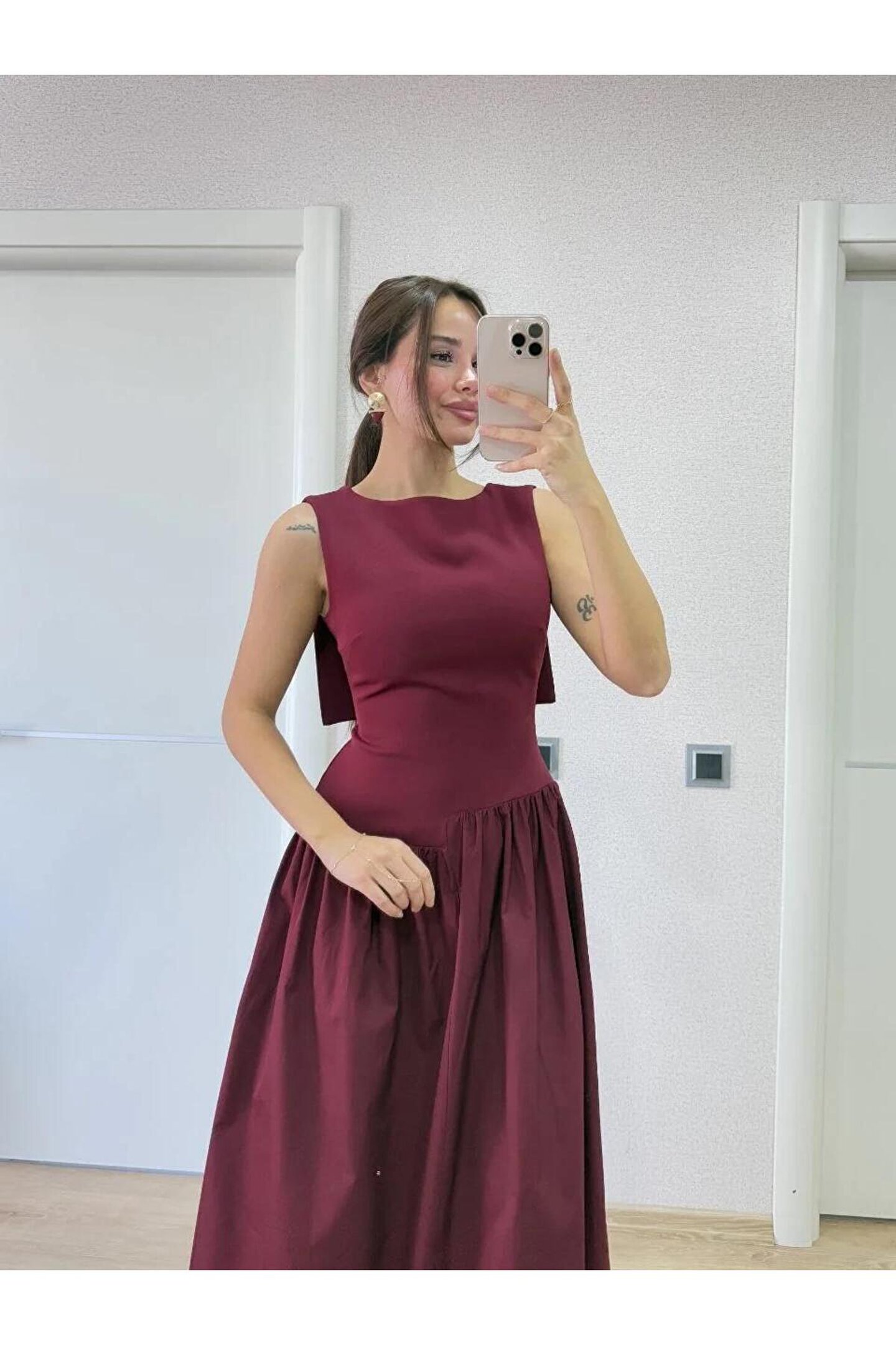 Arkası Kanatlı Uzun Elbise- Bordo Hediye paketi yapılır