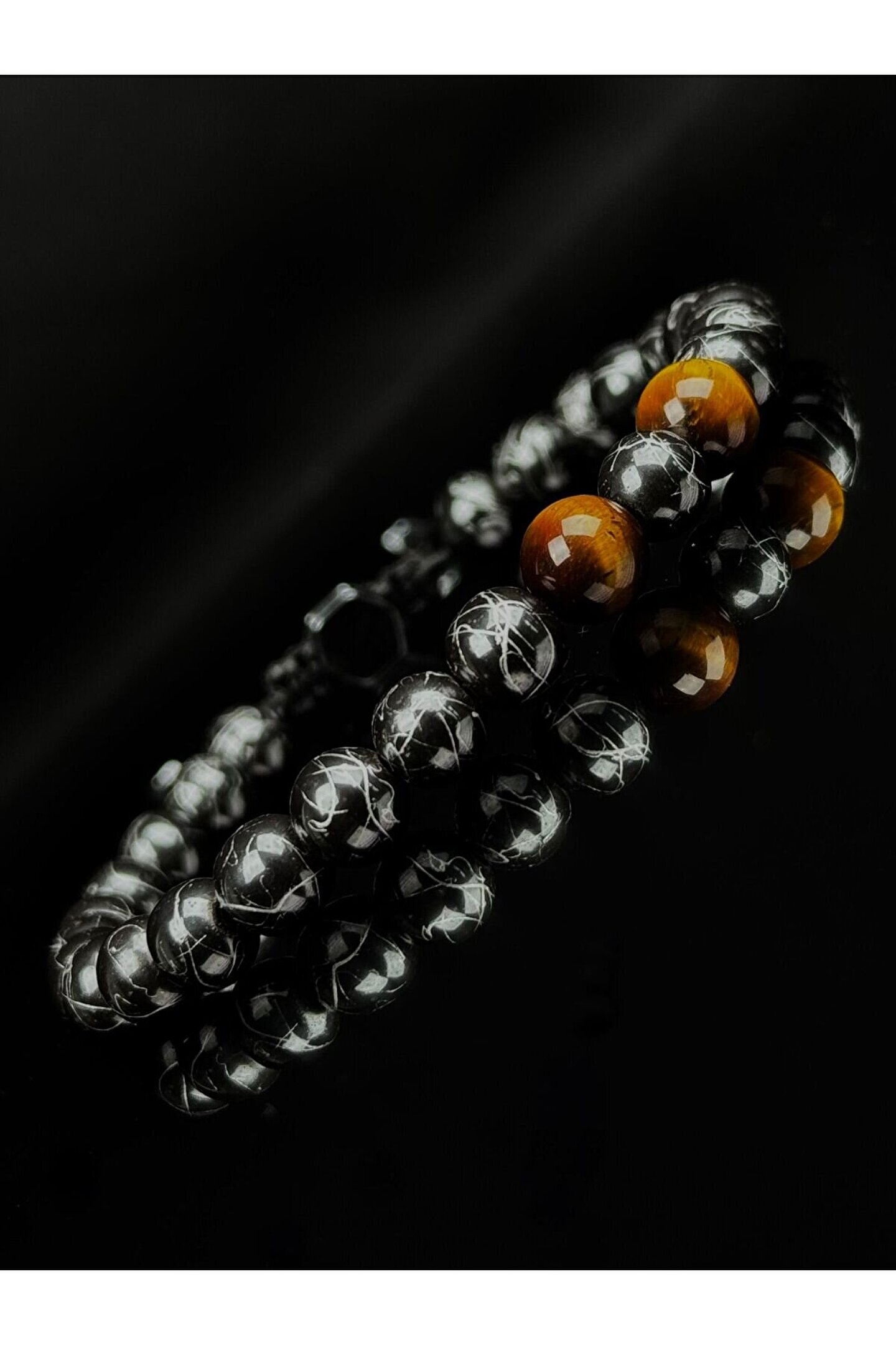 Doğal hematit taşı ve kaplan gözü bileklik, hem şıklığı hem de doğallığı bir arada sunar; Gençlerin enerjisine ve tarzına hitap eden bu bileklik, günlük kullanım için idealdir; Doğal taş materyali sayesinde her bilek boyutuna uyum sağlar ve konforlu bir kullanım sunar; Kaplan gözü detayı ile dikkat çekici bir görünüm kazandırırken, hematit taşı ile zenginleştirilmiş tasarımıyla göz alıcı bir stil oluşturur;