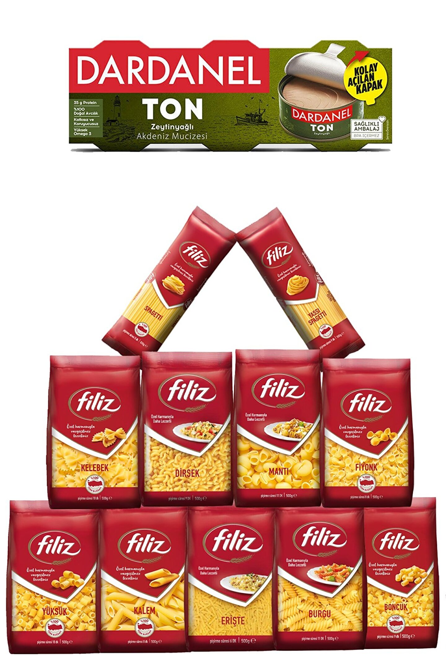 FİLİZ Makarna Ile Dardanel Ton Zeytinyağ Uyum Paketi 12 Parça
