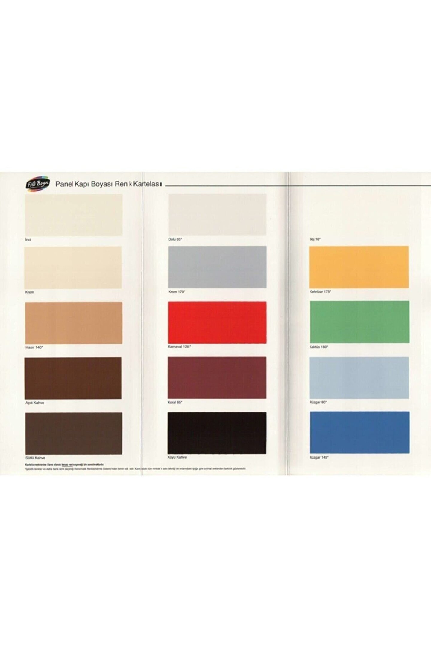 Panel kapılar için özel olarak geliştirilmiş akrilik reçine esaslı yarı mat görünümlü, örtücü ve koruyucu su bazlı son kat panel kapı boyasıdır; Renk : Krem litre :2; 5 litre özellikleri su ile inceltilebilen, ahşabın dokusunu gösteren yapıdadır; Suya ve evdeki kimyasallara karşı dayanıklıdır; Sararmaya karşı maksimum direnç gösterir, yüzeye mükemmel yapışır; Su bazlı olması nedeni ile rahatsız edici bir kokusu yoktur ve çevre dostudur; Uygulama uygulama yapılacak yüzeyler düzgün, sağlam ve son kat boyayı taşıyabilecek durumda olmalıdır; Boya yapılacak yüzeyler, her türlü kir, toz, yağ, gevşek tabakalardan temizlenmeli ve gerekli yüzey düzeltme işlemleri yapılmalıdır; Eski boyalı yüzeyler üzerine, boya uygulamasına geçilmeden önce, yüzeylerin tamamına yüzey ihtiyacına göre belirlenecek zımpara ile hafif zımpara yapılması ve zımpara tozlarının yüzeyden temizlenmesi gerekmektedir; Bu işlemler sonrası filli boya panel kapı boyası uygulamasına geçilebilir; Uygulama esnasında ve ürünlerin tam kuruması tamamlanıncaya kadar, ortam ve yüzey sıcaklığının +5°c ile +30°c arasında olmasına dikkat edilmelidir, yüzeyler dondan korunmalıdır; Rulo, fırça ve püskürtme ile uygulanabilir; Rulo ve fırça ile iki kat halinde uygulama yapılmalıdır (uygulama yüzeyinin durumuna ve rengine bağlı olarak ihtiyaca göre üçüncü kat uygulama da yapılabilir); Devam eden işlerde aynı kat sayısında uygulama yapılmalıdır; Kullanılan gereçler, uygulamadan hemen sonra bol su ile temizlenmelidir; Ürünlerimizin, 30; 06; 2007 tarih 26568 no; Lu inşaat genel teknik şartnamesine uygun yapılan alt yapı yüzeylerinde uygulanması gerekmektedir; Uygulanacak yüzeyler amerikan panel kapılarda, masif ahşap kapılarda, kaplamalı ahşap kapılar üzerine uygulama önerilir; Ham yüzeyin boyanması, ya da boya üstü boya uygulamasında kullanılır; Boya üstü boya uygulamalarında, su bazlı boya ve vernikler, solvent bazlı boya ve vernikler üzerine uygulanabilir; Yatay ahşap zemin ve yaya trafiği olan yüzeylerde kullanılmamalıdır; ;;