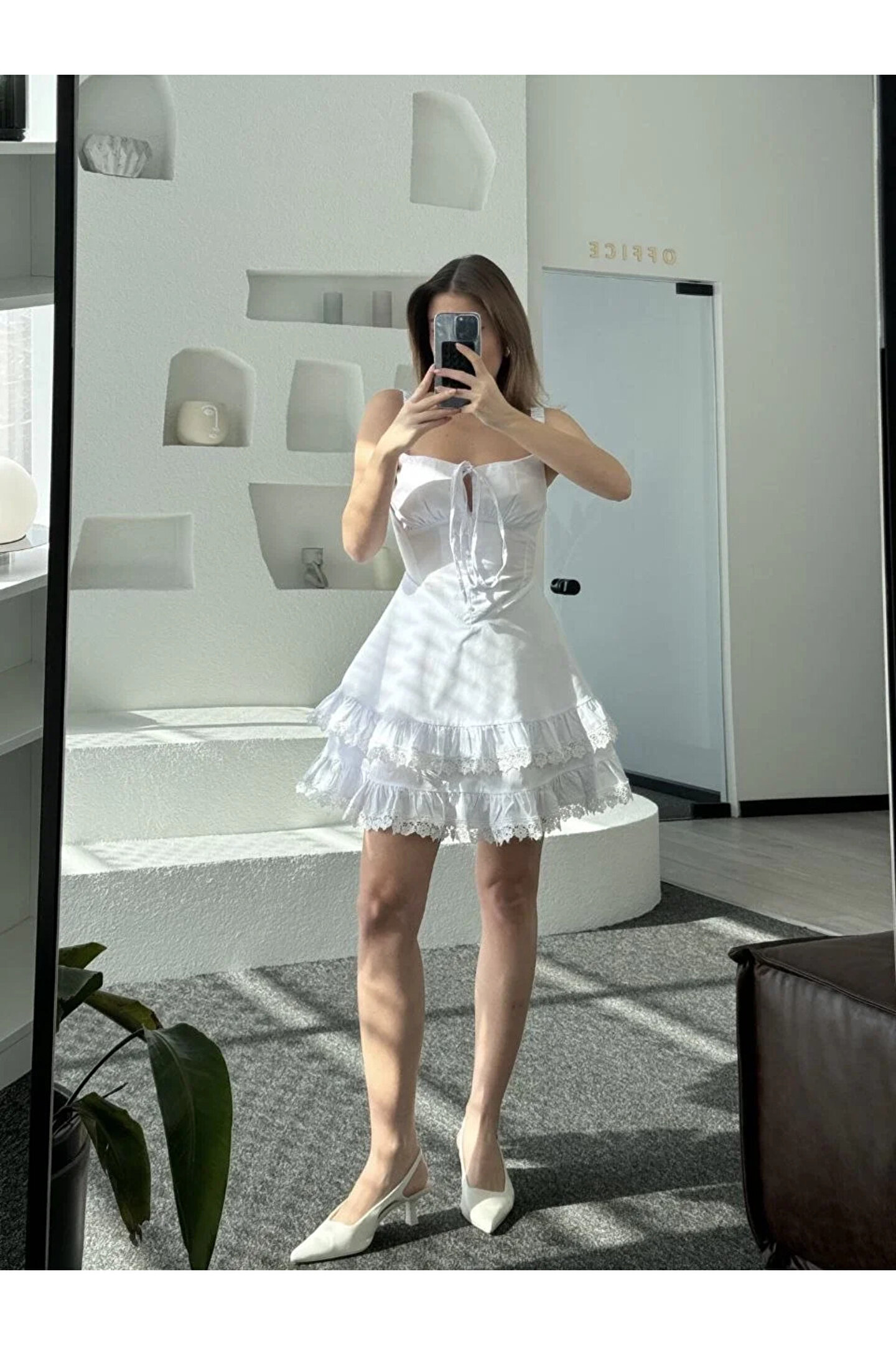 Flexium MİNİ ASKILI ELBİSE - BEYAZ