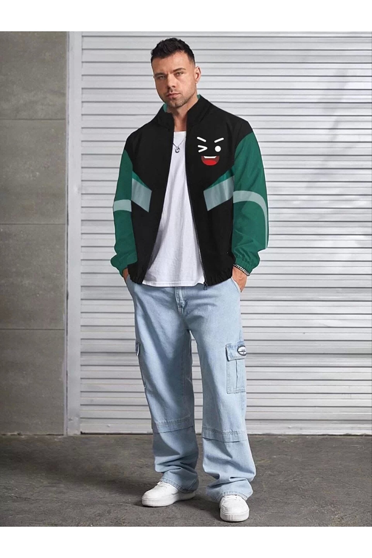 Flexium Unisex Uzun Kollu Paraşüt Kumaş Rüzgarlik - Siyah