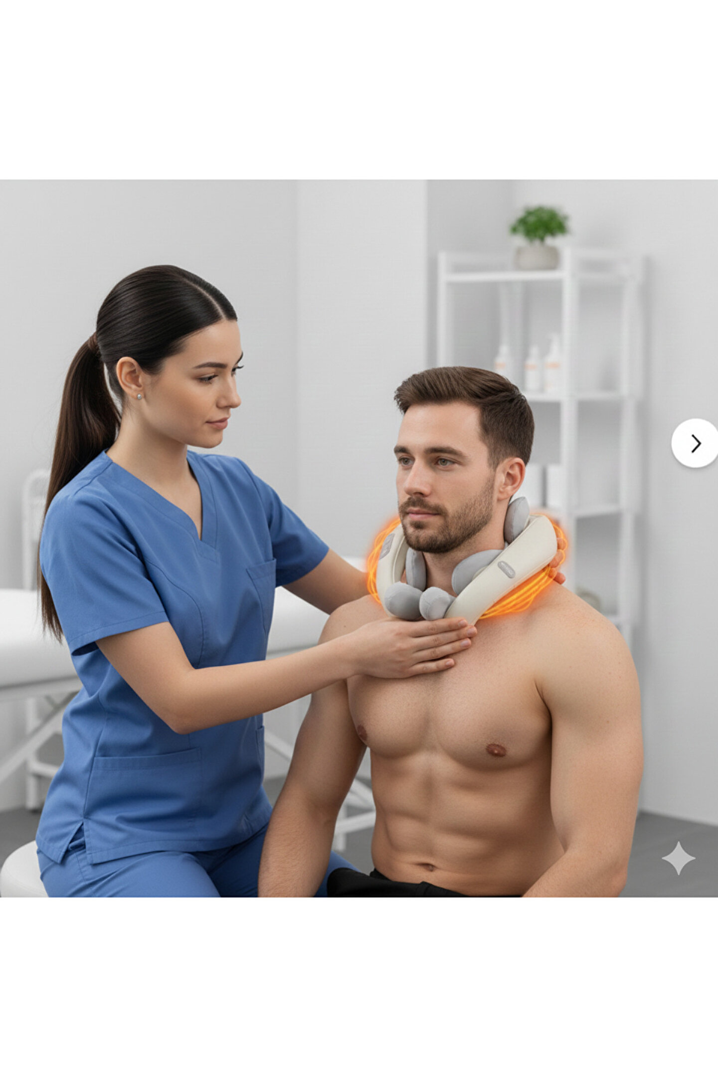 FTRMALZEMECİM Elektrikli ısıtmalı ovmalı boyun ve sırt masaj cihazı kablosuz bej rengi