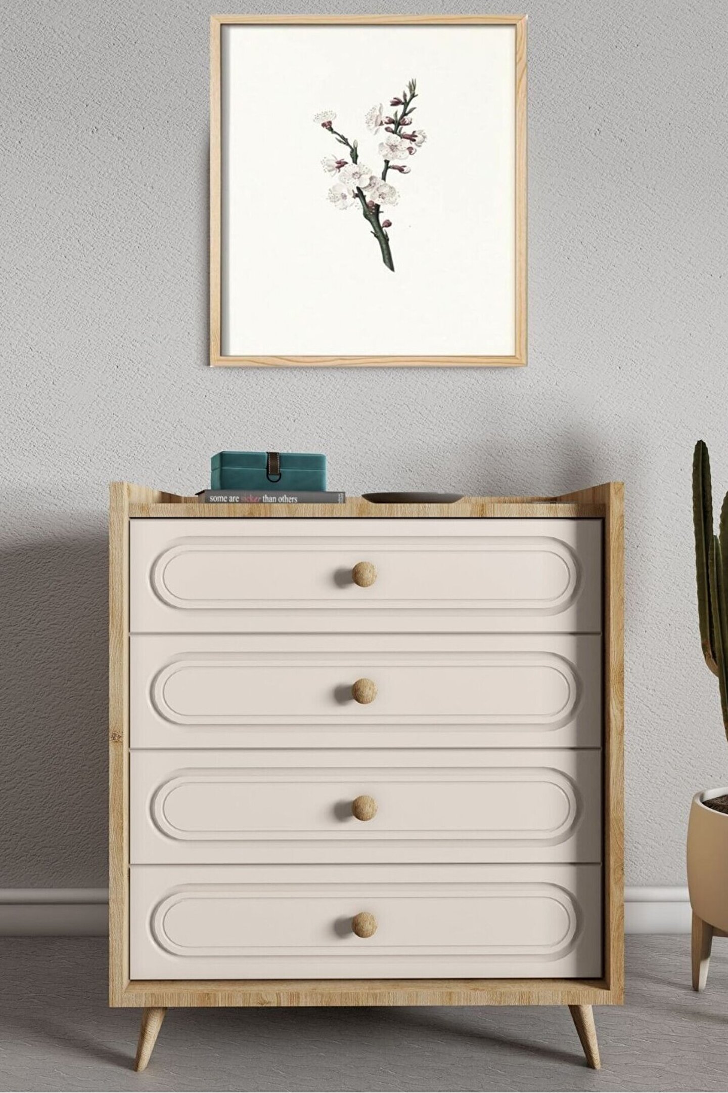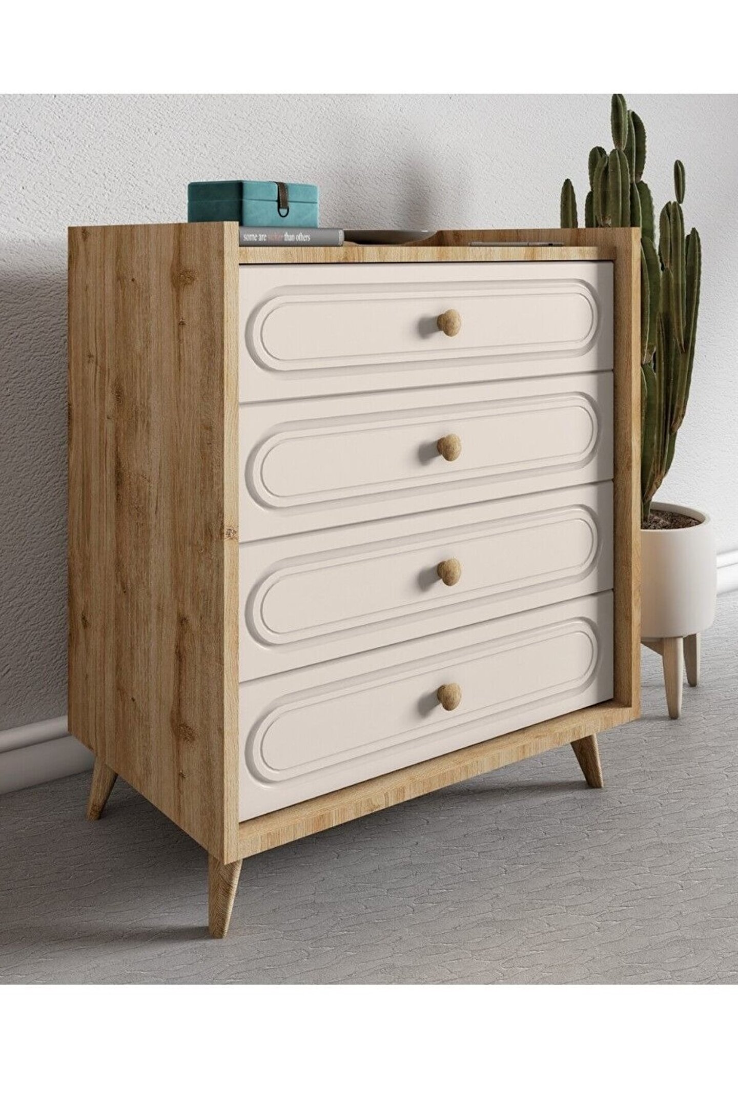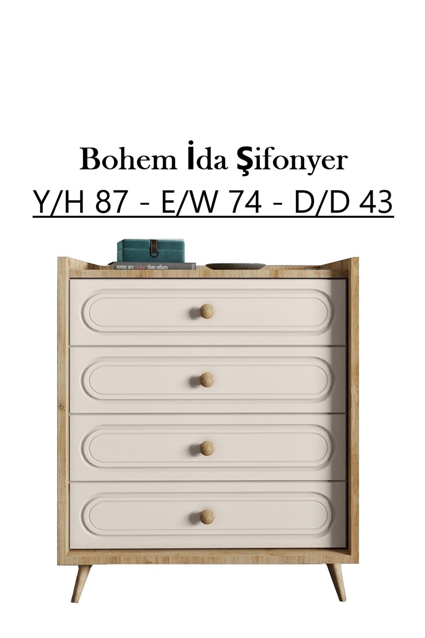 İDA 4 ÇEKMECELİ ŞİFONYER (SAFİR MEŞE-VİZON BEJ ) MDF KAPAK