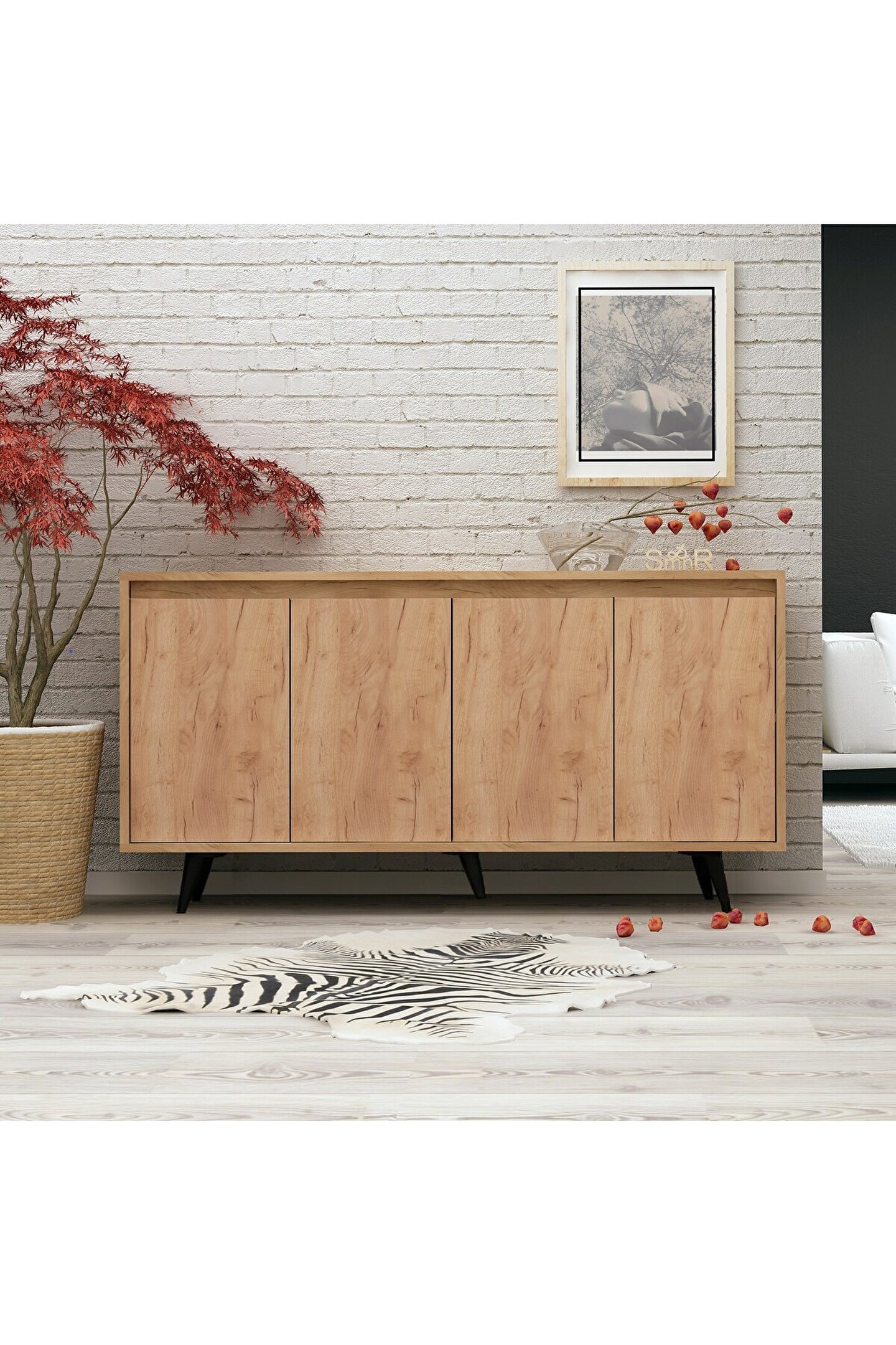 Ürün gövdesi 18 mm kalınlığında Safir Meşe renginde suntalam malzeme kullanılarak üretilmiştir. Yaşam alanlarına modern desenleriyle şıklık kazandırırken, kapalı ve açık bölmeleri ile depolama ihtiyacınızı giderebilecek niteliktedir.