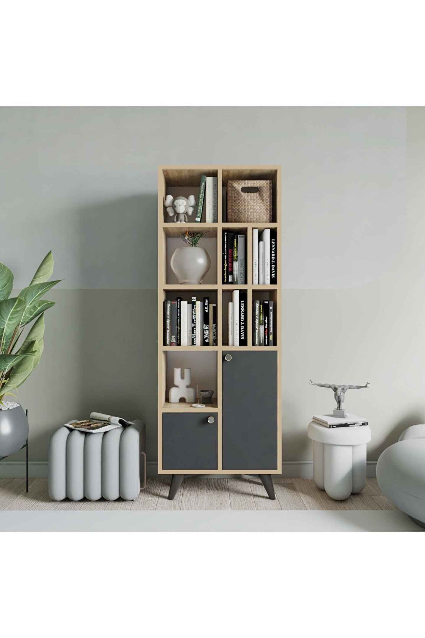 FUHO Yakut Kitaplık Safir Meşe-antrasit
