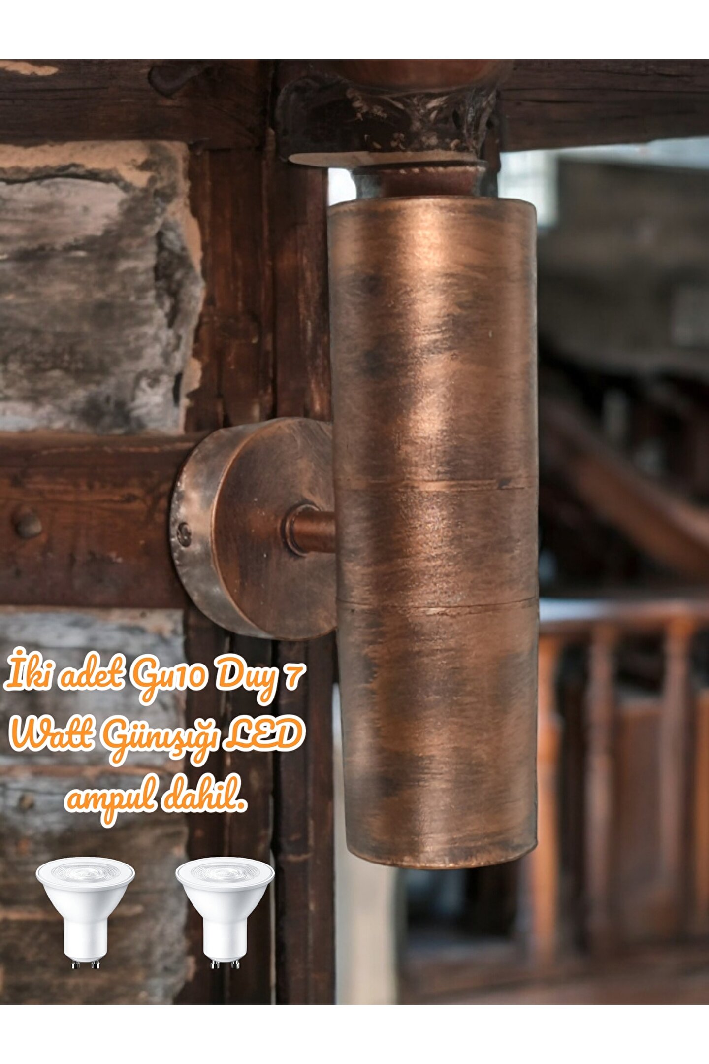 2 adet 7 watt gu10 duy ampuller dahil çift yönlü Bakır eskitme armatür bilgileri Ürünümüz elektrik kaynağına bağlanarak çalışır. ; Kesinlikle pilli, şarzlı, güneş enerjili vs. ; Değildir. ; Birinci kalite abs plastik gövde el işçiliği ile boyanarak eskitilmiştir. ; Max 2 x 7 watt gu10 duy led, ıp 65 koruma sınıfı, iç ve dış mekan aplik. ; Yağmur, kar ve güneş gibi mevsimsel şartlardan etkilenmez. ; Dolgun ve şık görünüm. ; Ürün ölçüleri: Yükseklik 18,6 cm, dürbün mercek çap: 6 cm, derinlik: 11,5 cm. ; Montaj aparat çapı: 7,2 cm. ; Paket içeriği: Bir adet bakır eskitme çift yönlü armatür ve iki adet 7 watt gu10 duy günışığı 3000k led ampul;