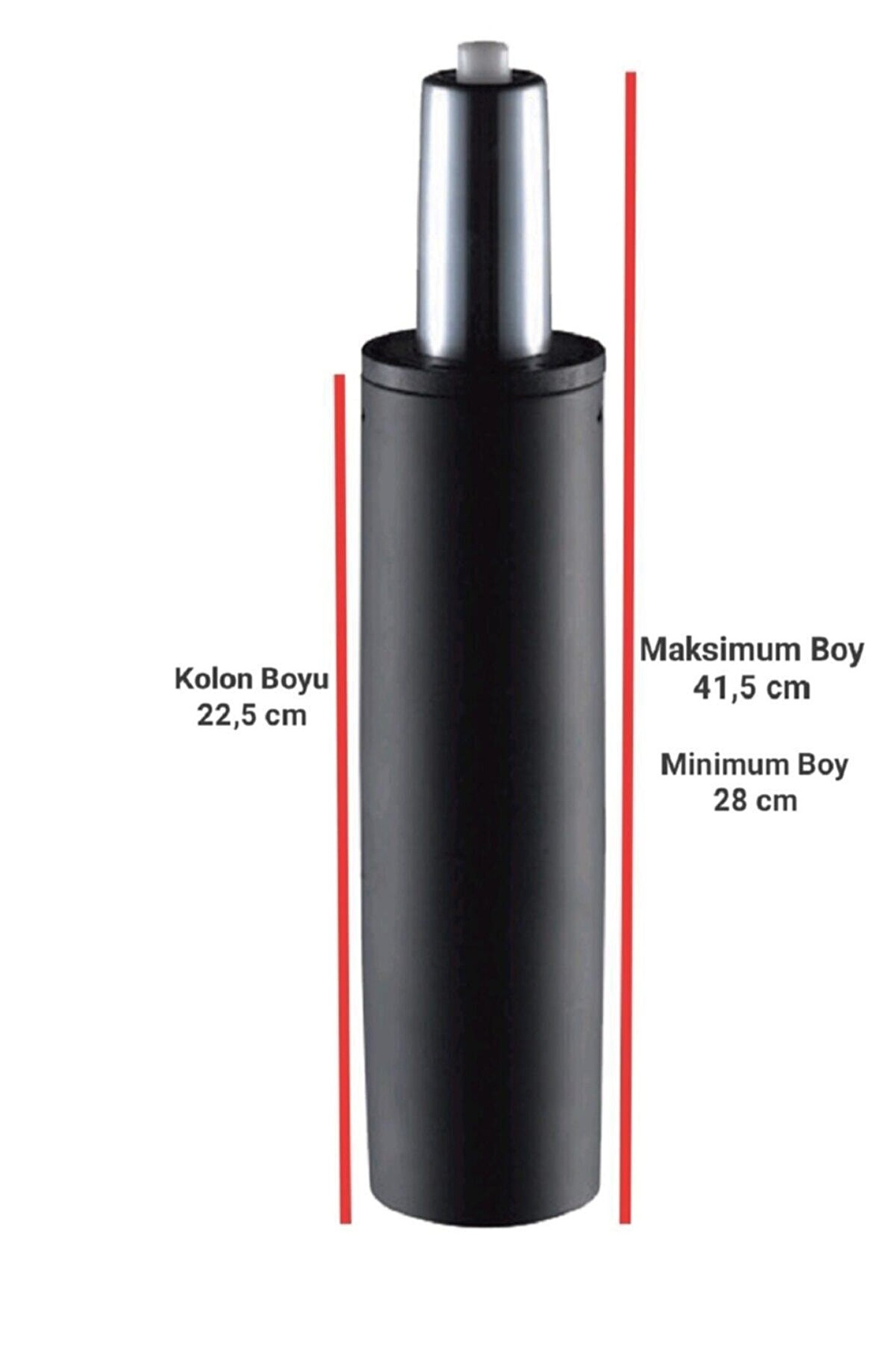 Ebatları: Maksimum yükseklik: 40,5cm Minimum yükseklik: 28,5cm Ürün Çapı: 50mm'dir. ; 140'lık amortisör gönderilir. ; Bozulan amortisörleriniz için yedek parça ürünüdür. ; Tüm Ofis Büro Koltuklarına uygundur. ; Komple metal malzemedir. ; Dayanıklı ve sağlam yapıdadır. ; Paket içeriği : 1 adet ofis koltuğu amortisörüdür.;
