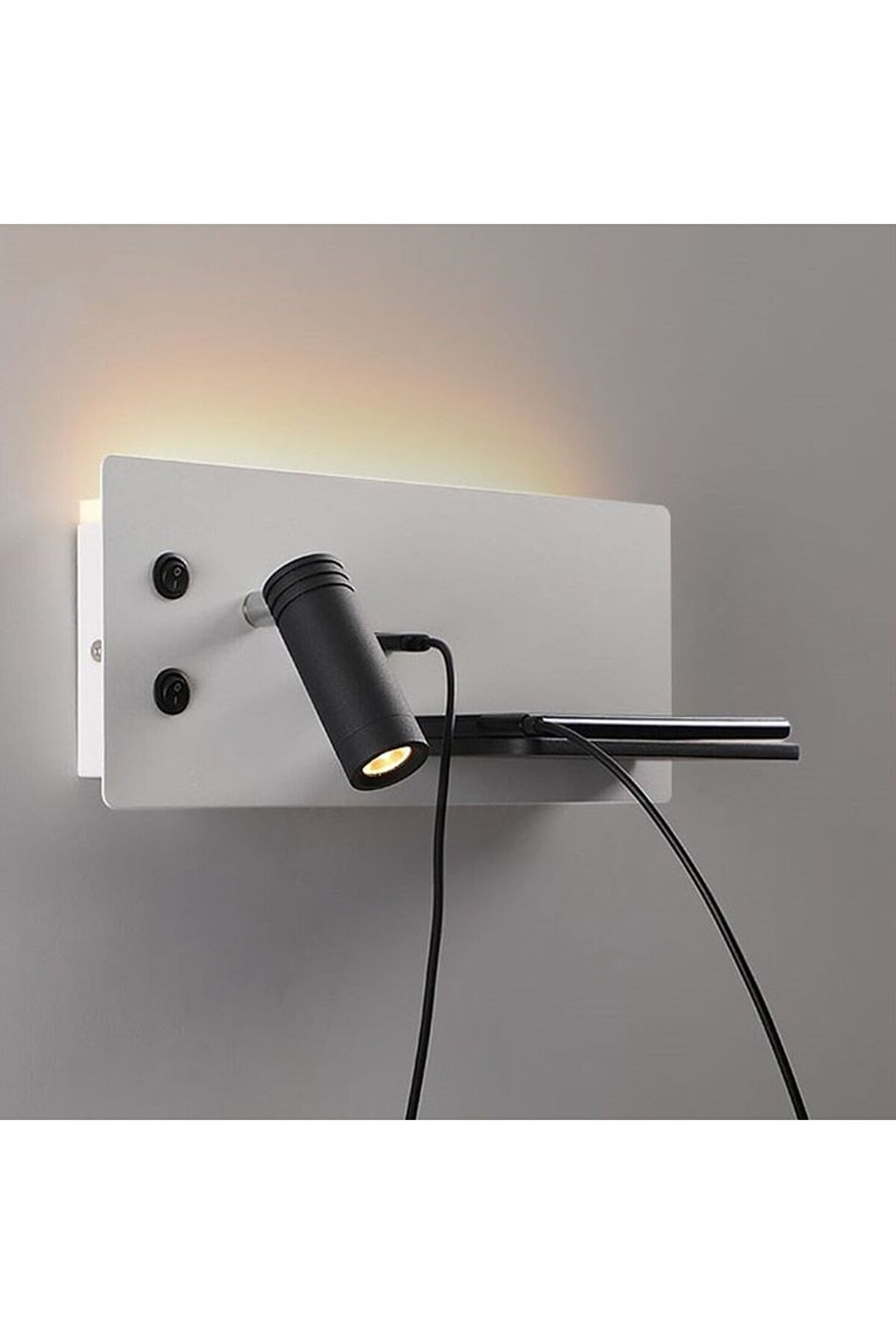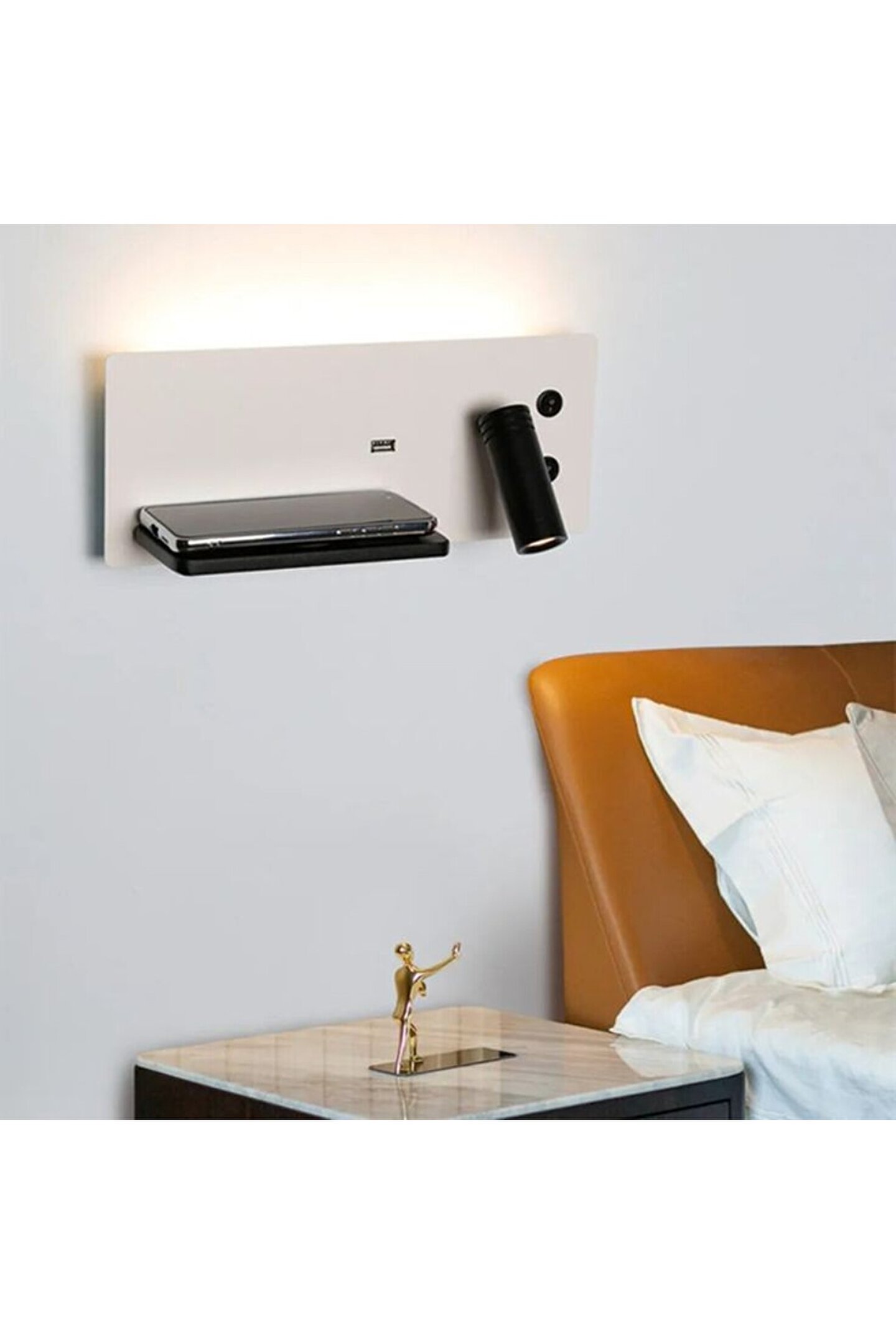 Ürünümüz elektrik kaynağına bağlı olarak çalışır. Türkiye'de sadece FullReyon'da satılan bu ürün yeni nesil telefonlar için kablosuz şarj edebilme özelliğinin yanı sıra tüm telefonları şard edebilmek için USB girişe sahiptir. Oynar başlı led kısmı sayesinde odanızda loş bir ortamda uyumanın ya da oynar başlığı çevirip kitap okumanın keyfine varabilirsiniz. Düşük enerji tüketimi olan ürünümüz metal kasadır. İçerisinden montaj aparatı ve vida - dubel çıkmaktadır. Montajı oldukça basittir. Alüminyum kasa, 25000 Saate kadar led ömrü vardır. ISO Belgeli, yerli üretim olan bu ürün Türkiye'de FullReyon tarafından üretilmektedir. Ürünün üst kısmında yukarı doğru 7 watt 3000 Kelvin gün ışığı led bulunmaktadır. Dürbün kısımda 3 Watt 3000 Kelvin Gün ışığı led vardır.