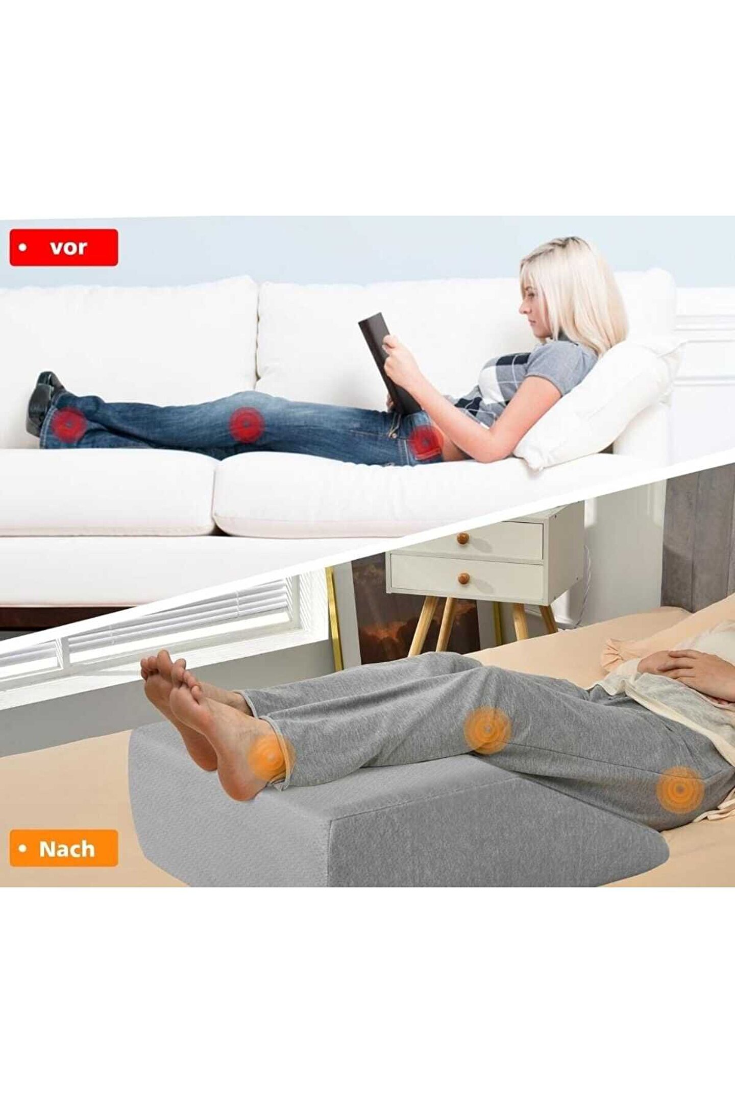 【Ergonomik Bellek Köpüğü】 Kalın Hafızalı Köpük Yastığı Çok Rahat Hale Getirir.; Kanepede, Yatakta Veya Başka Yerlerde Dinlenmek Ve Uyumak Için Idealdir.; 【İdeal Bacak Yastığı】Yastık Şişliği Gidermek, Kan Dolaşımını Uyarmak, Omurgayı Desteklemek Ve Sağlıklı Duruşa Katkıda Bulunmak Için Idealdir.; Kavisli Şekli Sayesinde Kısa Sürede Rahatlayacaksınız.; 【Nefes Alabilen Ve Yıkanabilir Kılıf】 Yastığın Kılıfı Fermuar Sayesinde Çıkarılabilir Ve Çamaşır Makinesinde Sorunsuz Bir Şekilde Yıkanabilir, Ayrıca Nefes Alabilir Ve Çok Yumuşaktır.; 【Sağlıklı Bir Yaşam Tarzı Için】 Yastık 60 X 54,5 X 20 Cm (U X G X Y) Ölçülerindedir Ve Bu Nedenle Bacaklarınız Ve Ayaklarınız Için Yeterli Alan Sunar.; Bu Kan Dolaşımını Uyarır Ve Sırt Ağrısını Hafifletir.; 【Çok Işlevli Kullanım】 Bu Yüksek Kaliteli Yastık Uyurken, Otururken Veya Tv Izlerken Bacakları Veya Sırtınızı Destekler.; Bu Nedenle Doğum Veya Ameliyat Sonrası Dönem Için Mükemmeldir.; Kaymaz Taban, Kaymayacağı Anlamına Gelir.
