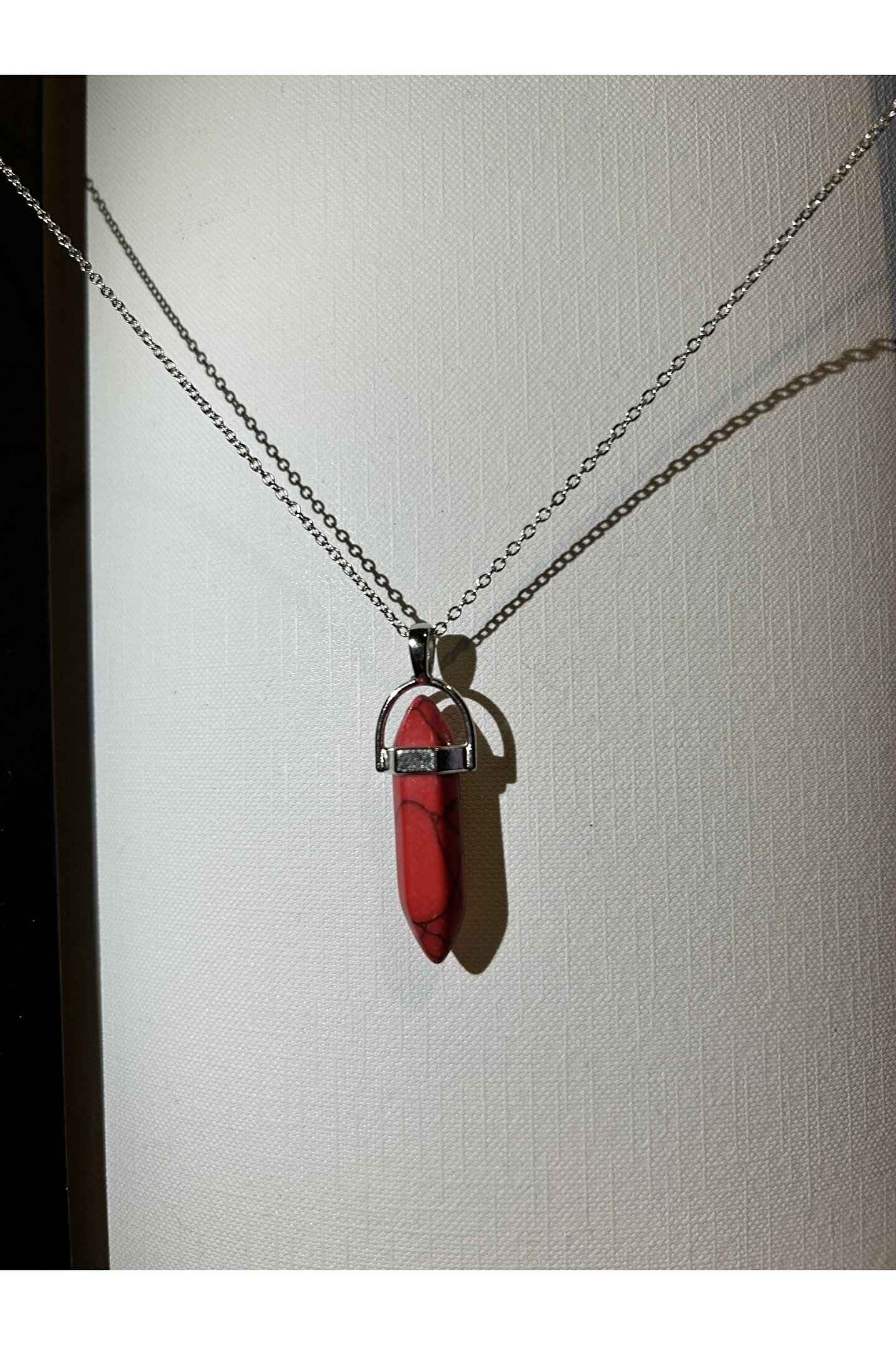 Kırmızı Firuze çivi kolye, doğal taşın sıcak ve canlı enerjisini üzerinizde taşırken, sizlere aşk, tutku ve cesaret gibi duyguları hatırlatacaktır. ; Kırmızı firuze taşının canlı ve çarpıcı rengi, herhangi bir kıyafeti anında canlandıracak ve sizlere dikkat çekici bir görünüm kazandıracaktır. ; Kendimize veya sevdiklerinize özel bir hediye olarak da tercih edebileceğiniz bu çivi kolye, enerji dolu bir stil be pozitif bir ruh hali sunar. ; Siz de doğal taşların gücünü hissetmek ve tarzınıza farklı bir dokunuş katmak için bu muhteşem kolyeyi seçebilirsiniz;
