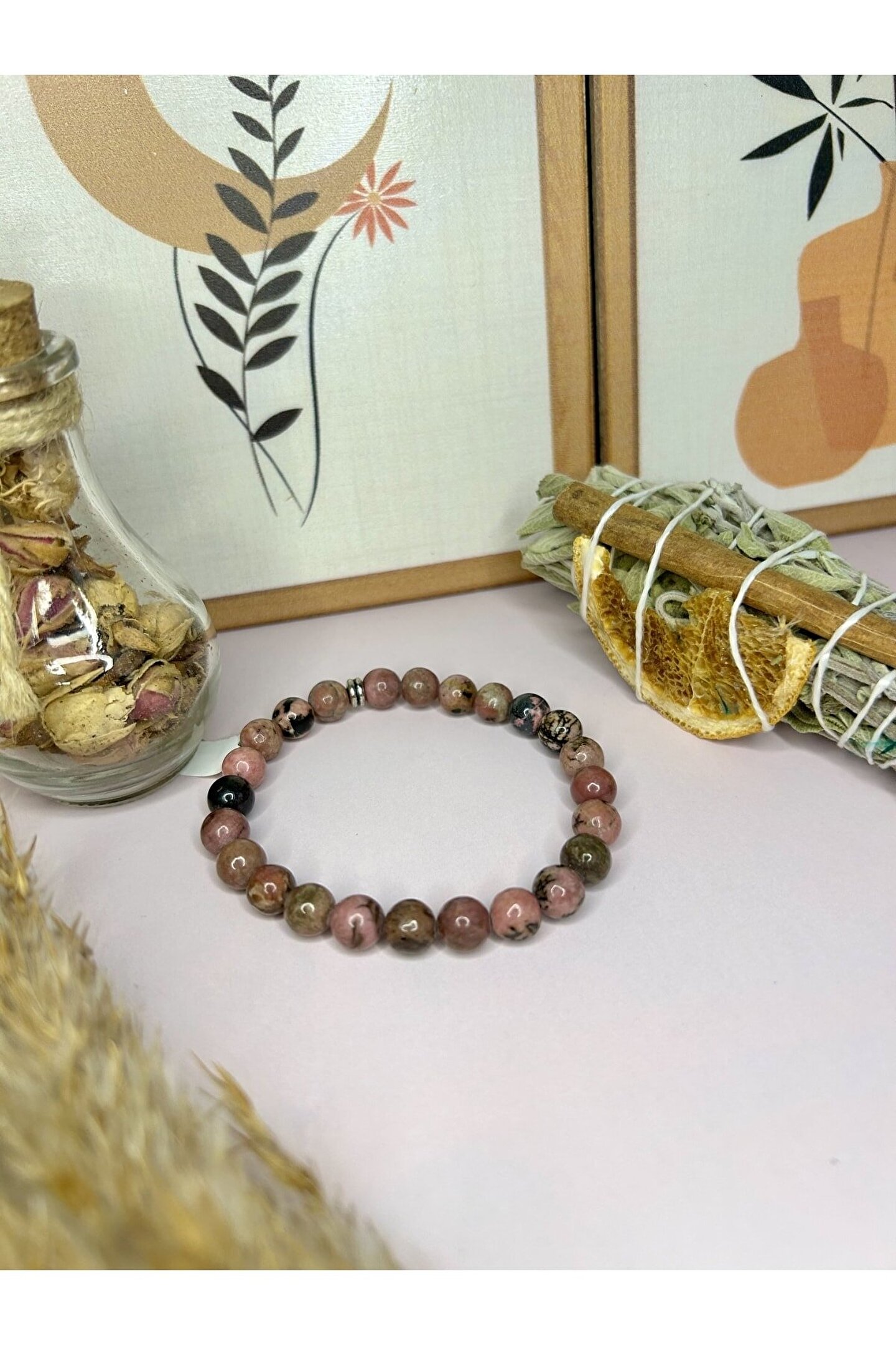 Doğal taş kullanımı sayesinde her bileklik benzersiz ve otantik bir görünüm kazandırır; - Rodonit taşı, bileklikte zarif bir parlaklık ve estetik bir dokunuş sağlar;