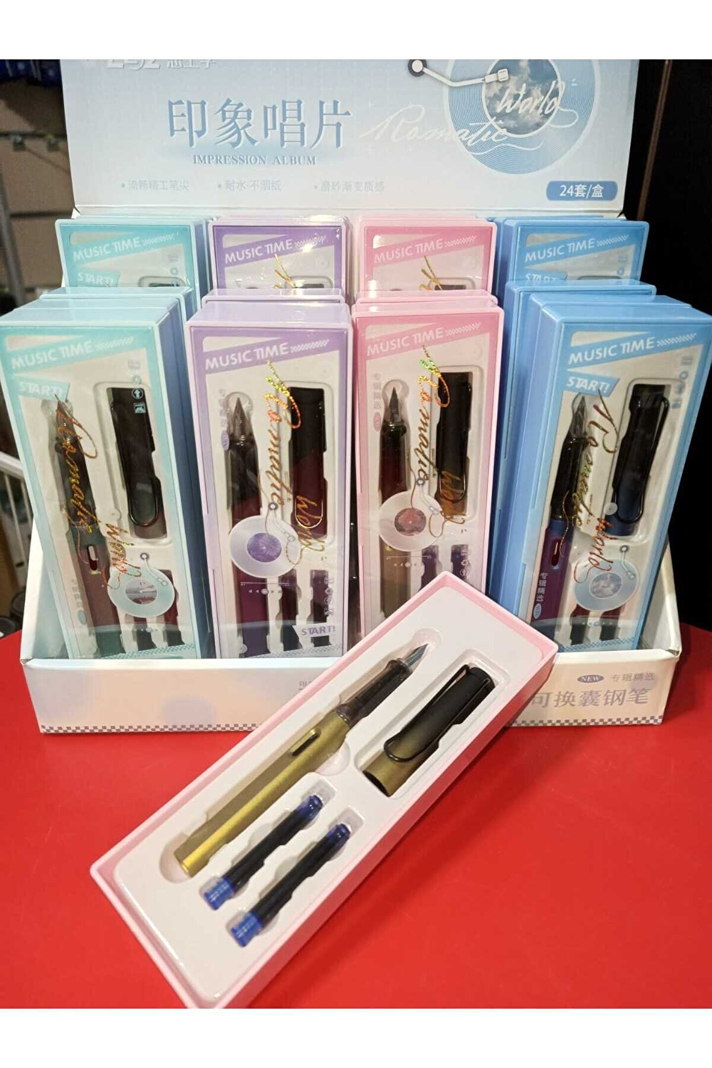 Hediyelik Dolma Kalem Seti EF uçlu kalem+iki kartuş sert mika METALİK GOLD