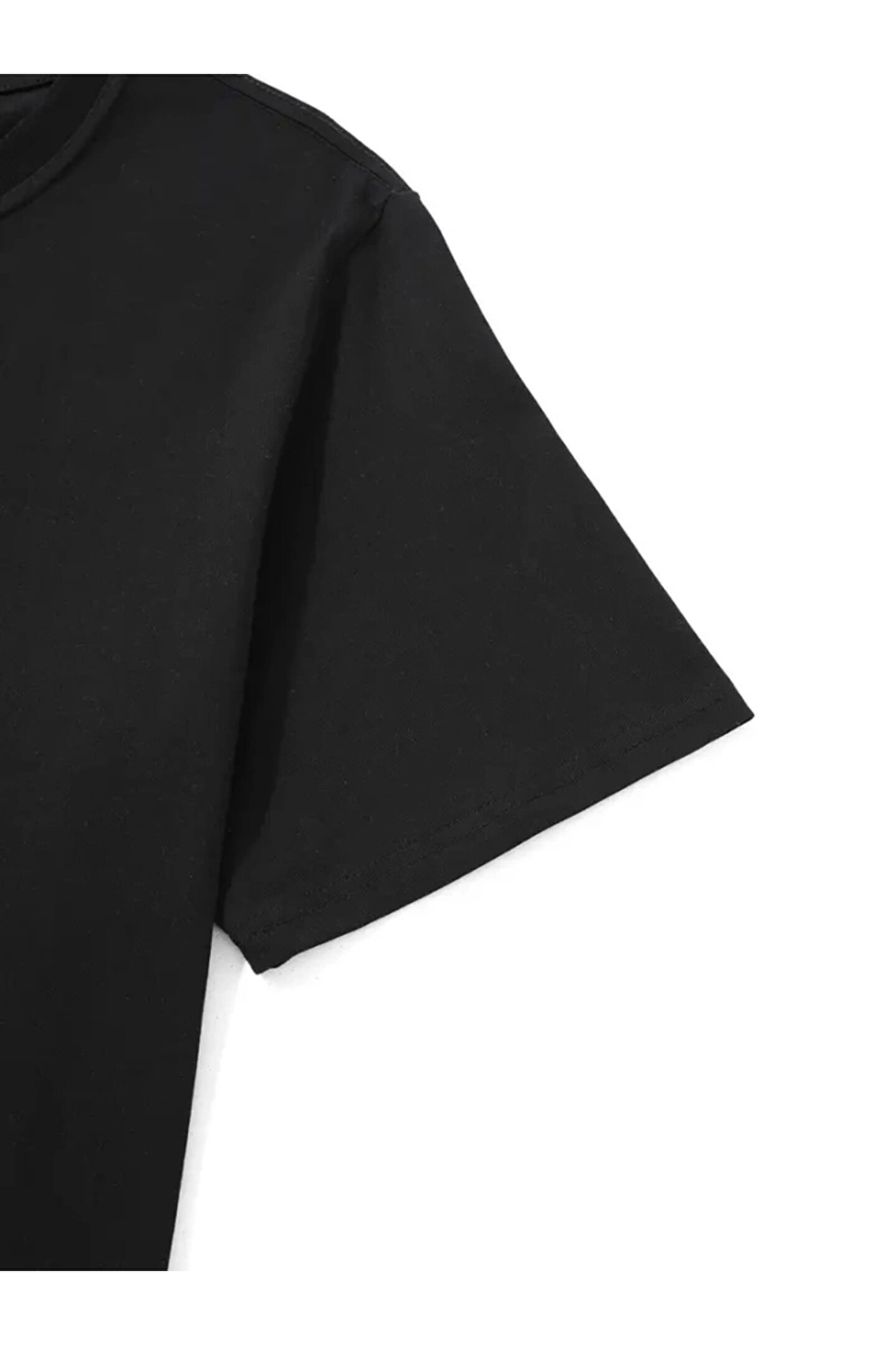 gelirr Baskılı Oversize Bisiklet Yaka T-shirt - Siyah