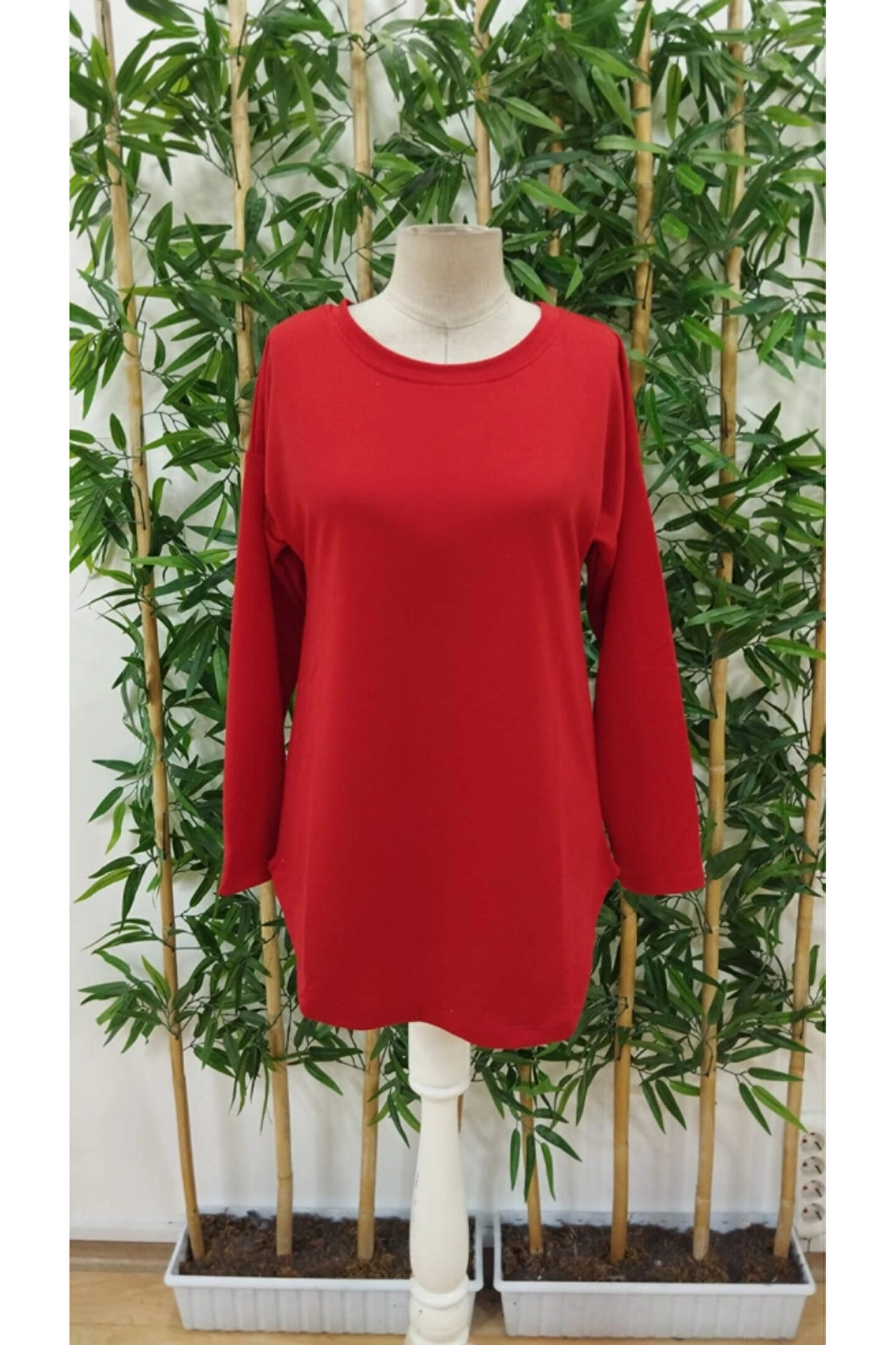 Kadın Uzun Kollu Yuvarlak Yaka Salaş Iki Iplik Bluz