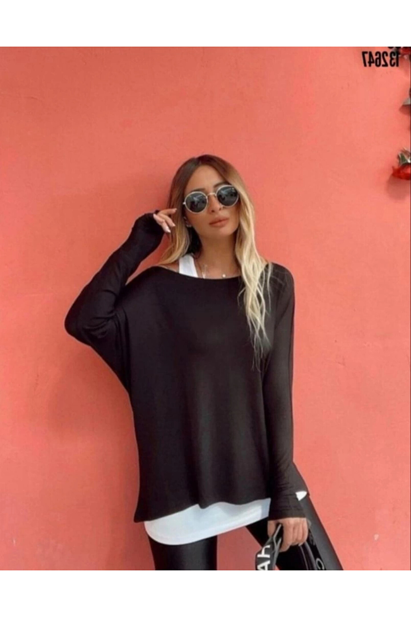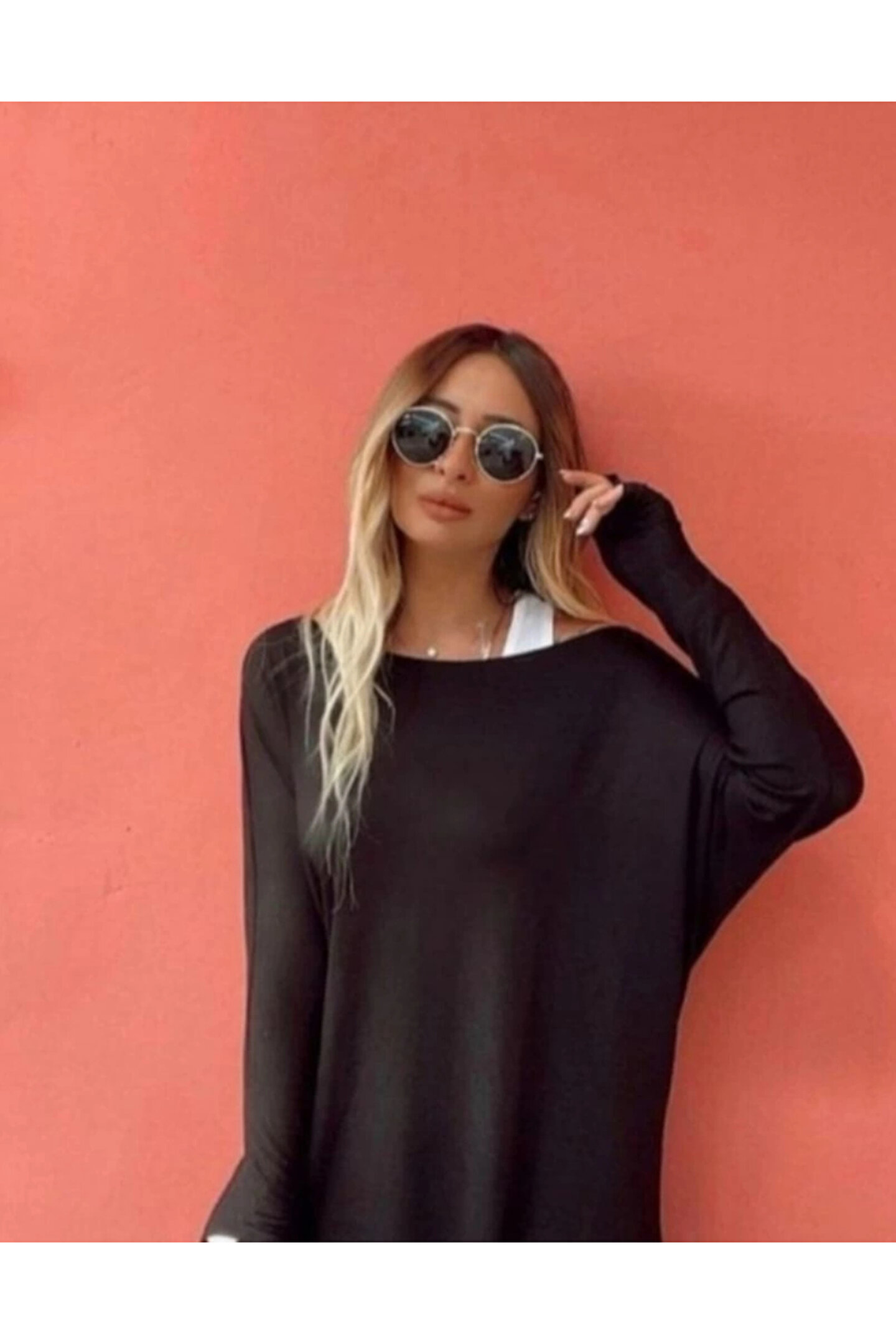 Kadın Uzun Kollu Tek Omuzdan Açık çilek Bluz Ve Viskon Atlet Ikili Takım