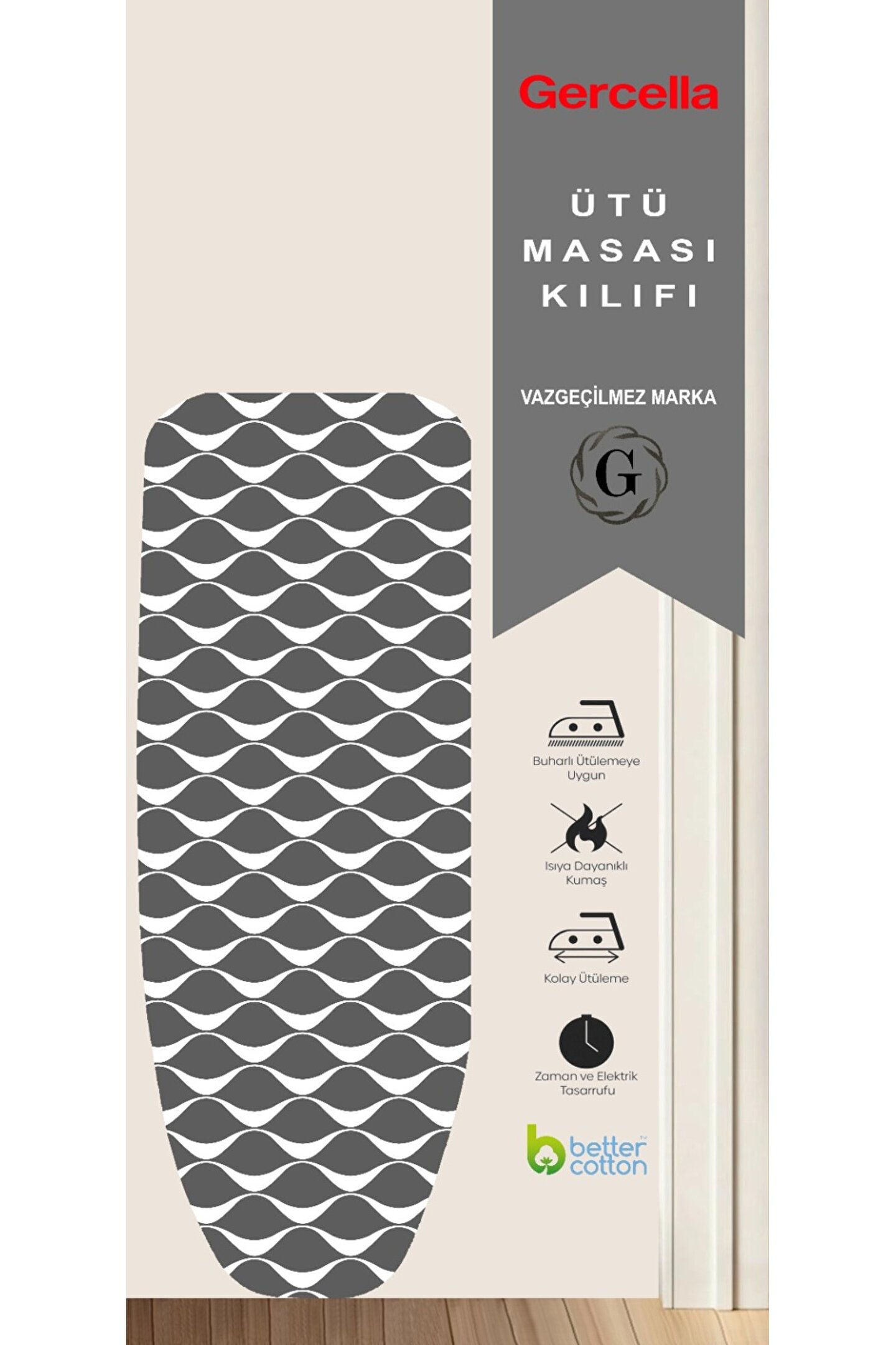 GERCELLA DELTA GREY 54X140 (M SİZE) ÜTÜ MASASI KILIFI BEZİ ÖRTÜSÜ IRONING BOARD COVER