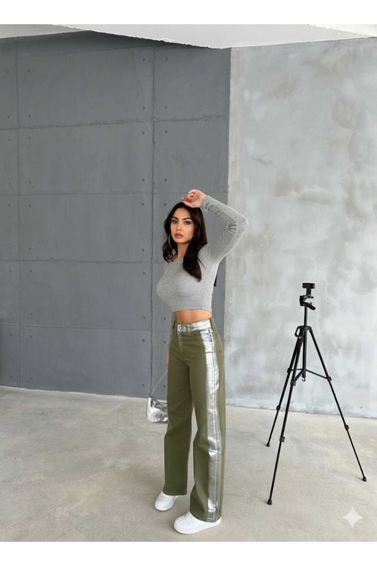 gl00my GABARDİN PALAZZO PANTOLON - Haki