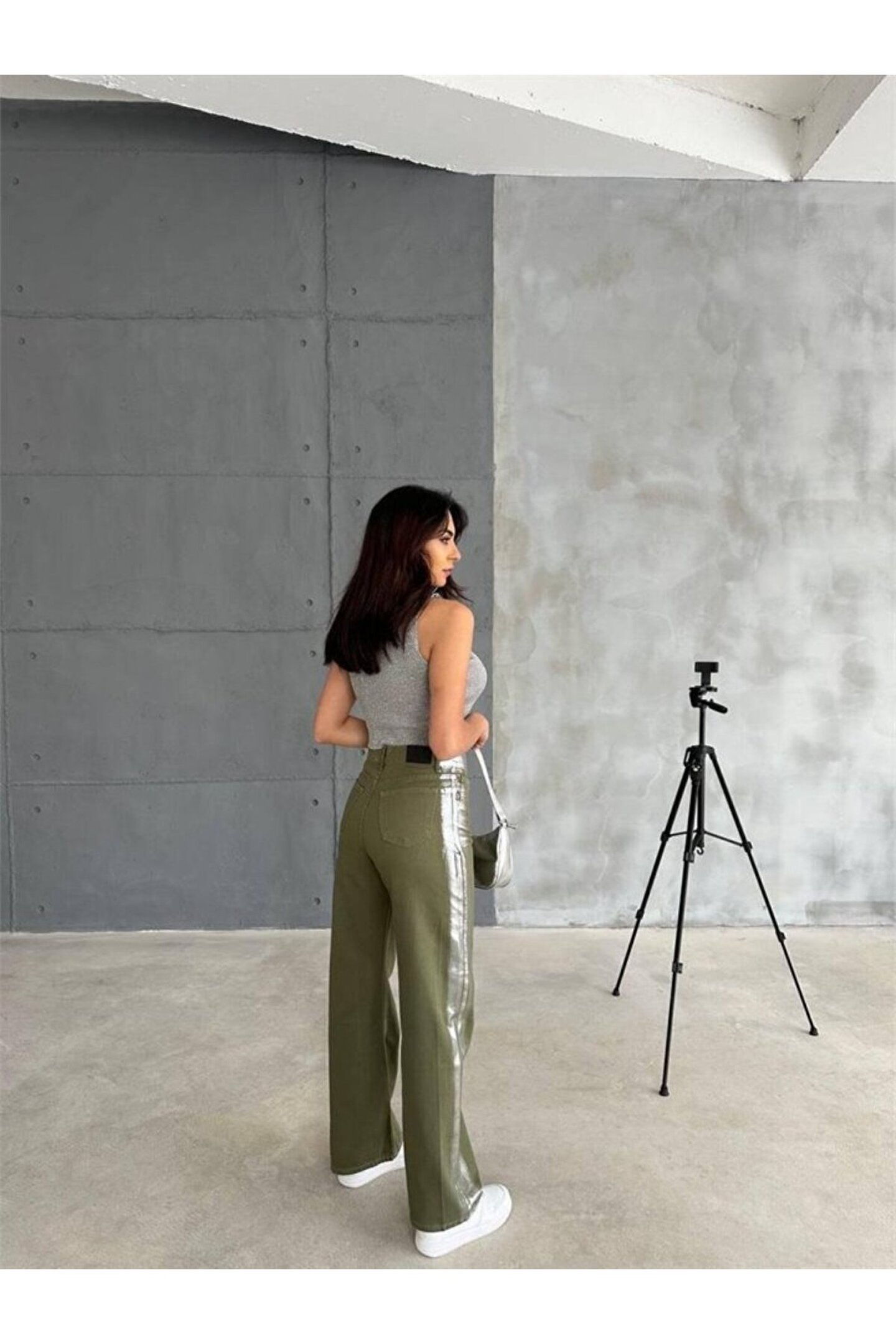 GABARDİN PALAZZO PANTOLON - Haki