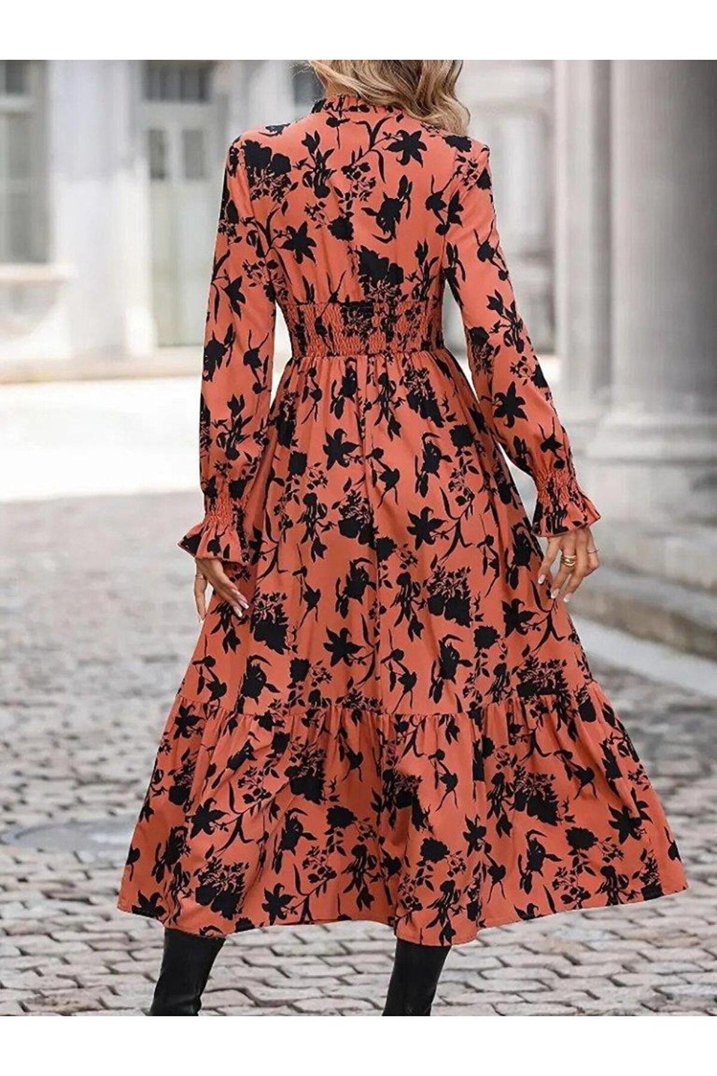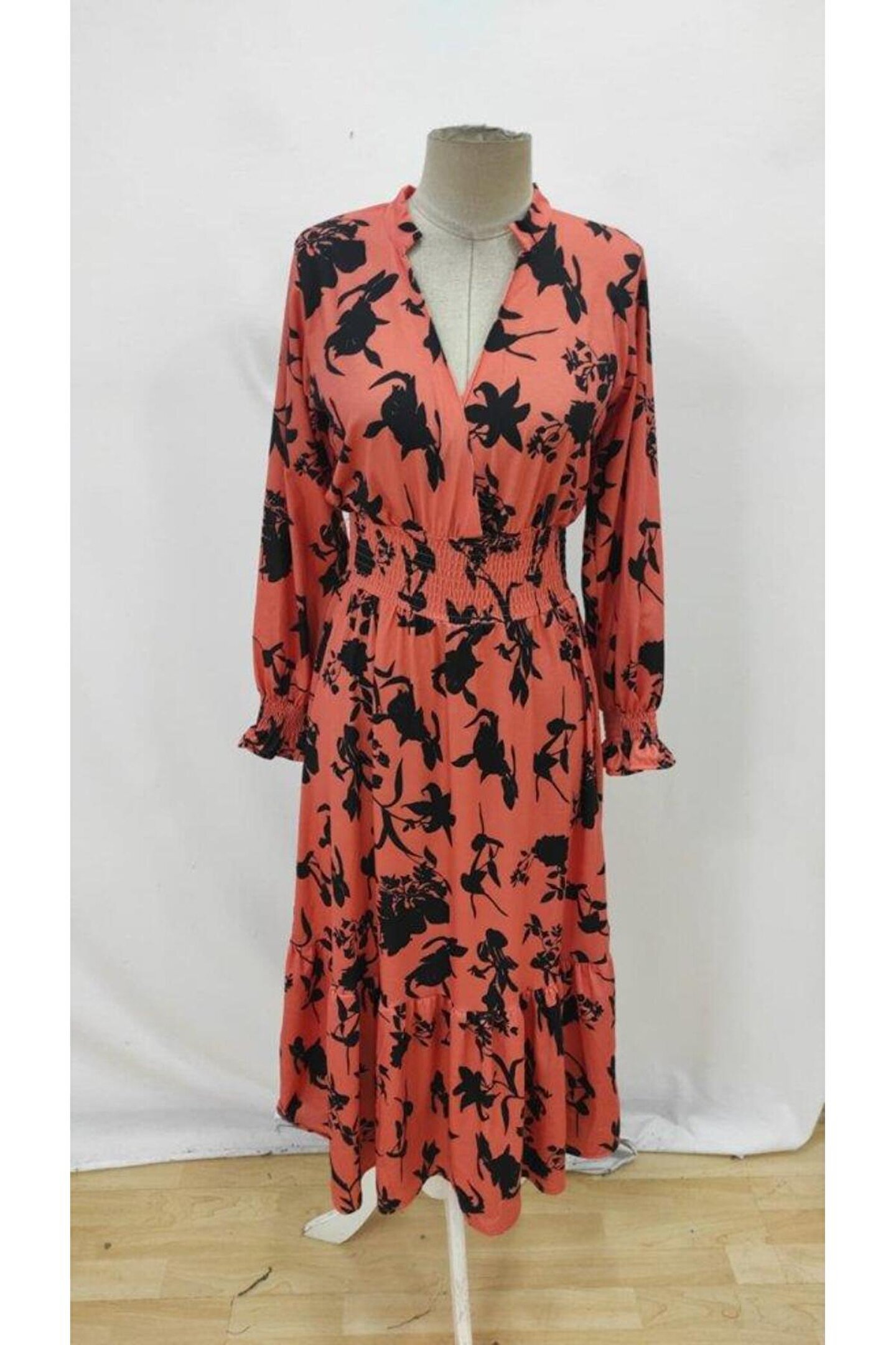 Kadın Uzun Kollu Kruvaze Yakalı çiçek Desenli Maksi Süprem Elbise