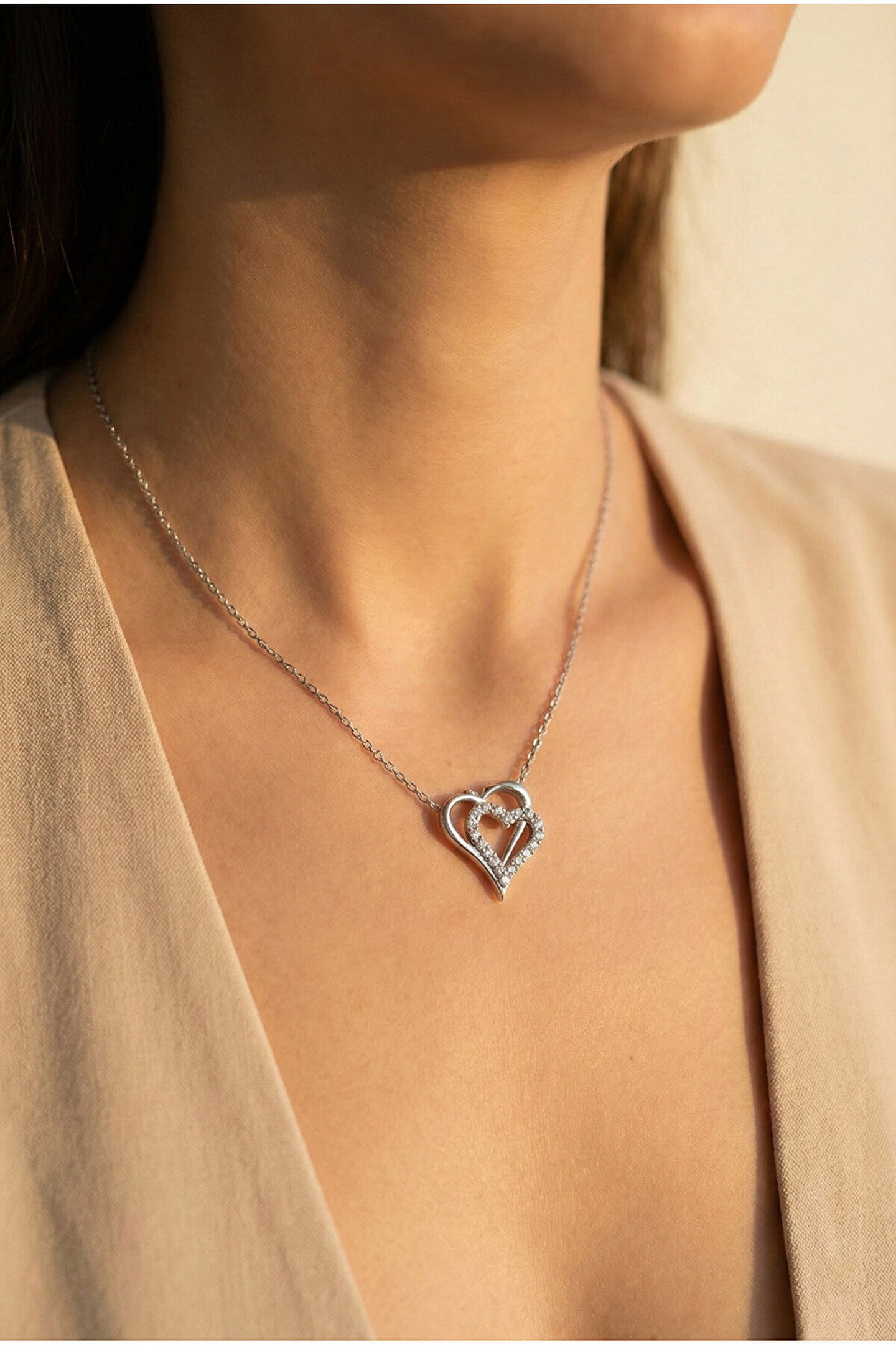 Zarif tasarımıyla dikkat çeken ikili kalp kolye, gümüş rengin asaletini yansıtır; Göz alıcı zirkon taşlarla süslenmiş bu kolye, her türlü özel gününüzde şıklığınızı tamamlar; Kalp şeklindeki detaylar, sevginin ve romantizmin simgesi olarak anlamlı bir hediye seçeneği sunar; Gümüş kolye, hem günlük kullanım hem de özel davetlerde tercih edebileceğiniz zarif bir aksesuardır;
